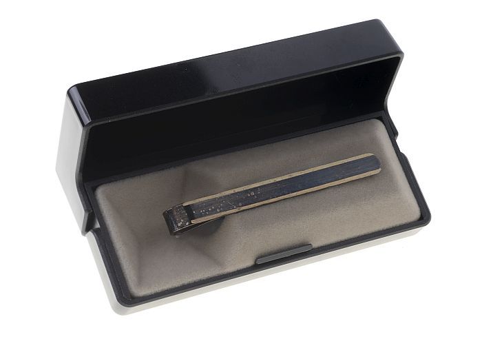 Zwarte metalen dasspeld met gouden randje in origine...