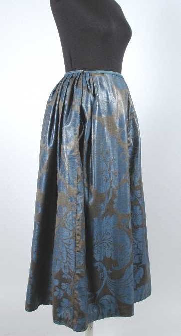 Lange wijde rok van wollen damast met bruine en donk...