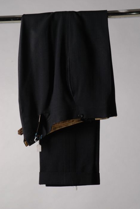 Zwart herenkostuum in stijlkeper binding, etiket "Me...