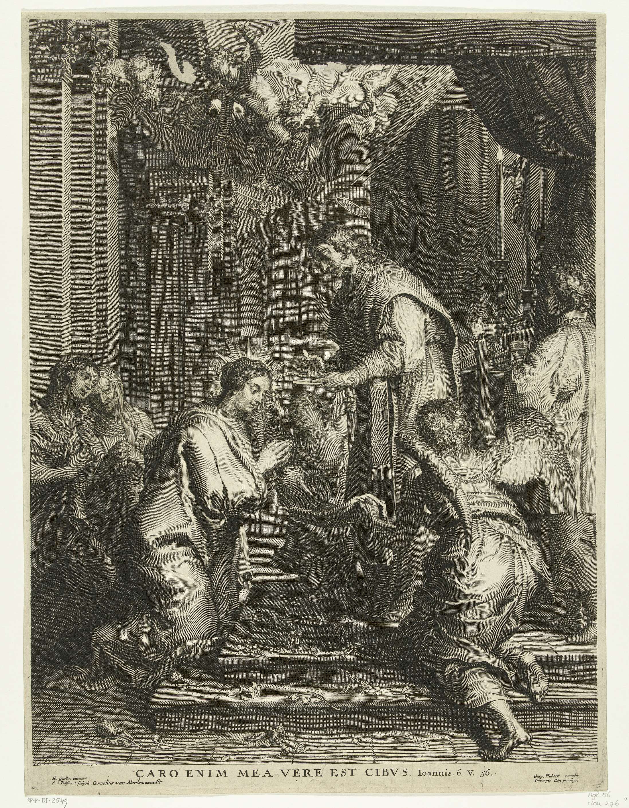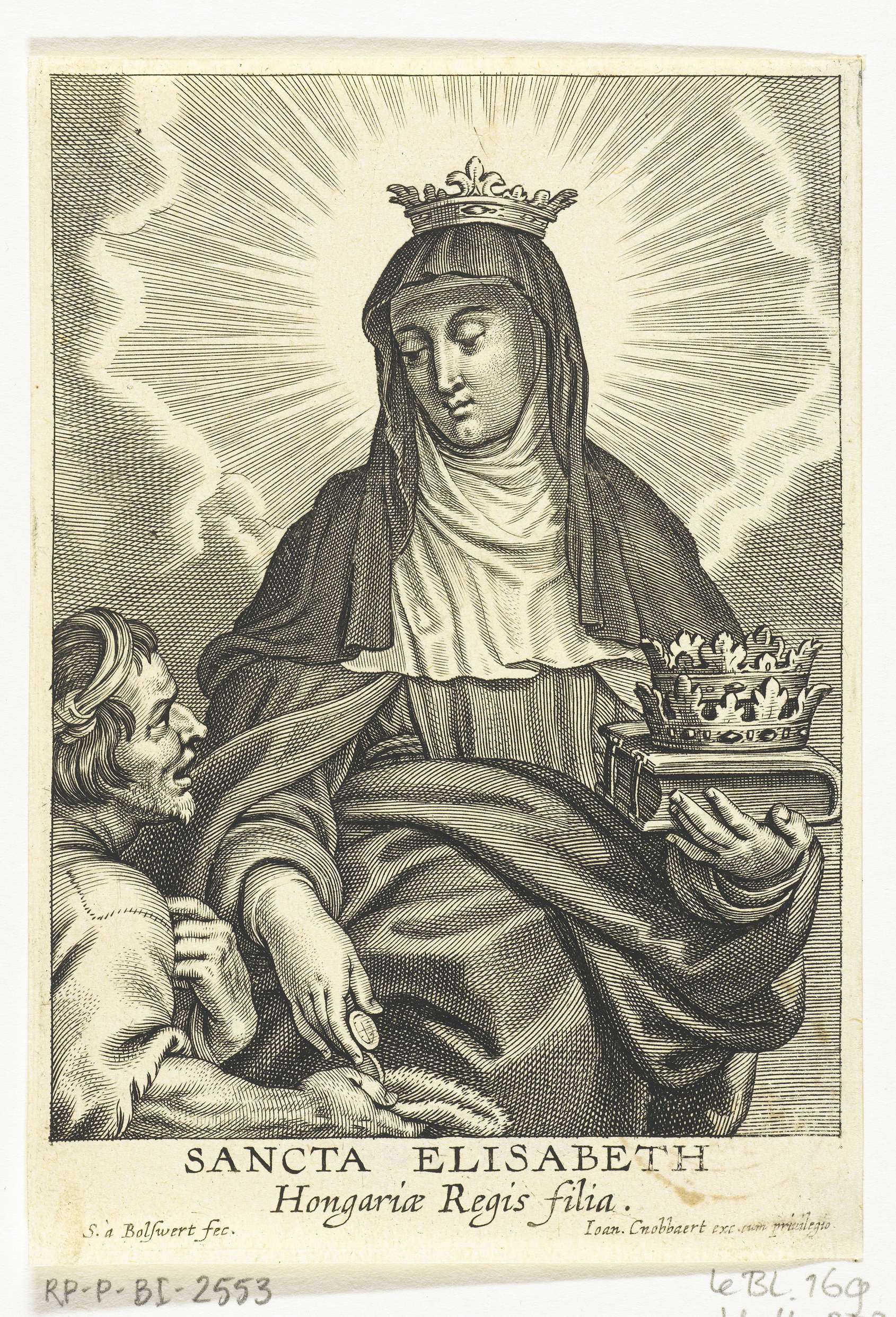 Heilige Elisabet van Hongarije met kronen geeft bede...