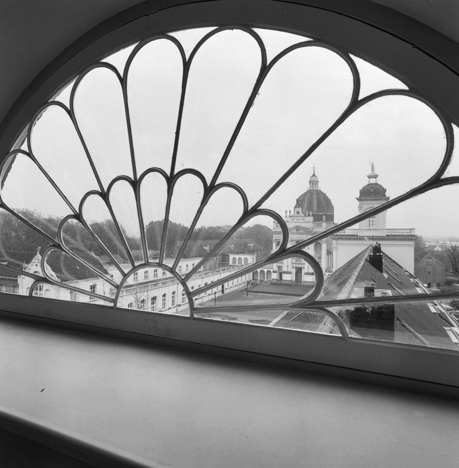 Zicht vanuit een venster van de voorbouw op de Vince...