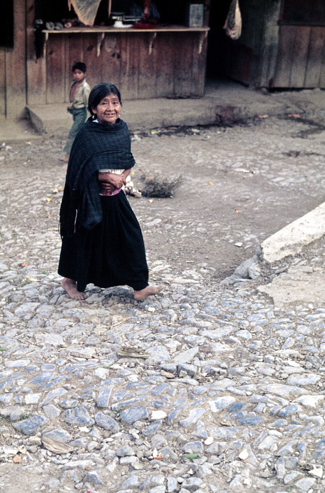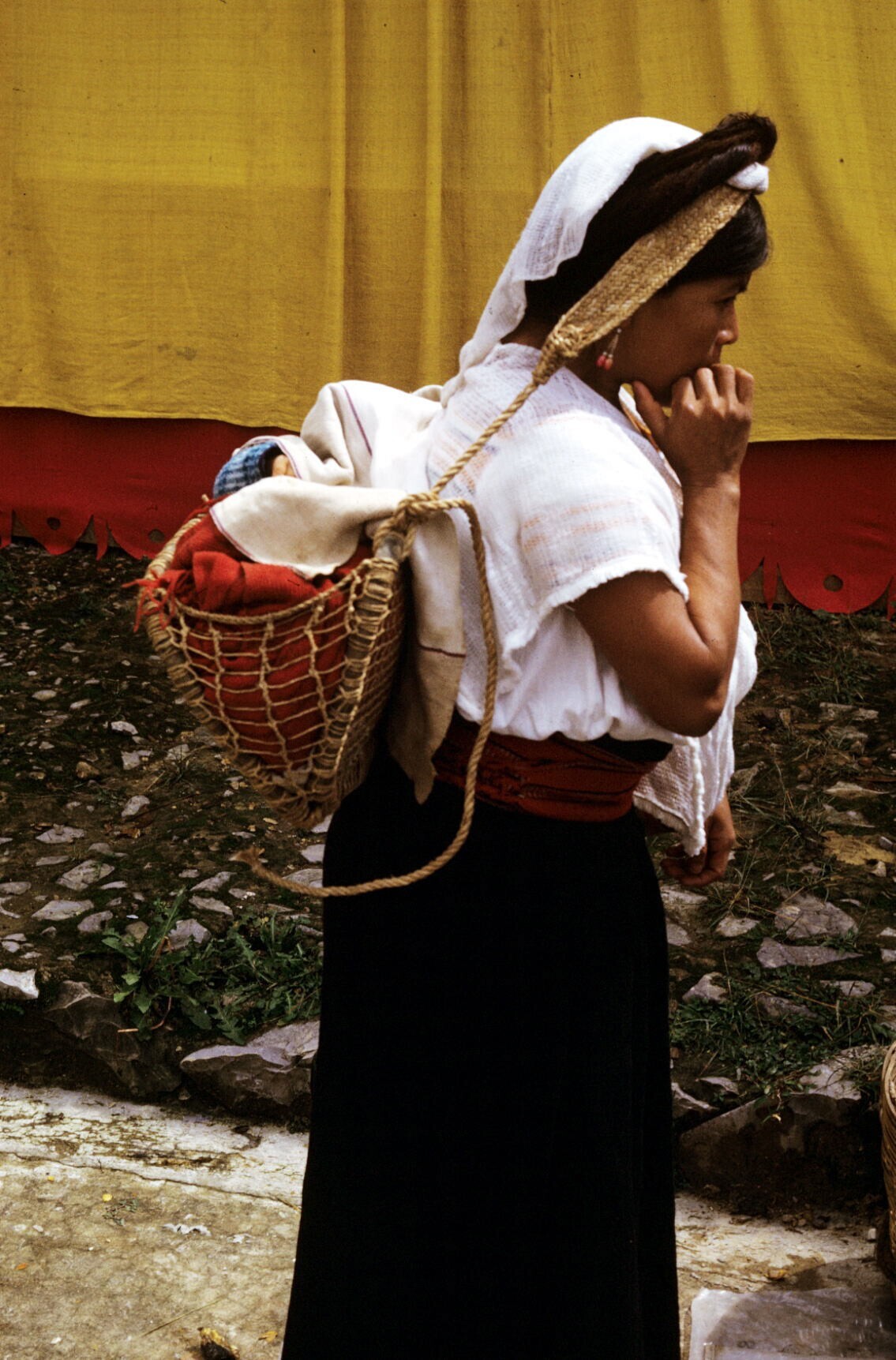 vrouw met "hua'cal " (draagmand van de Cuetzalan-regio)