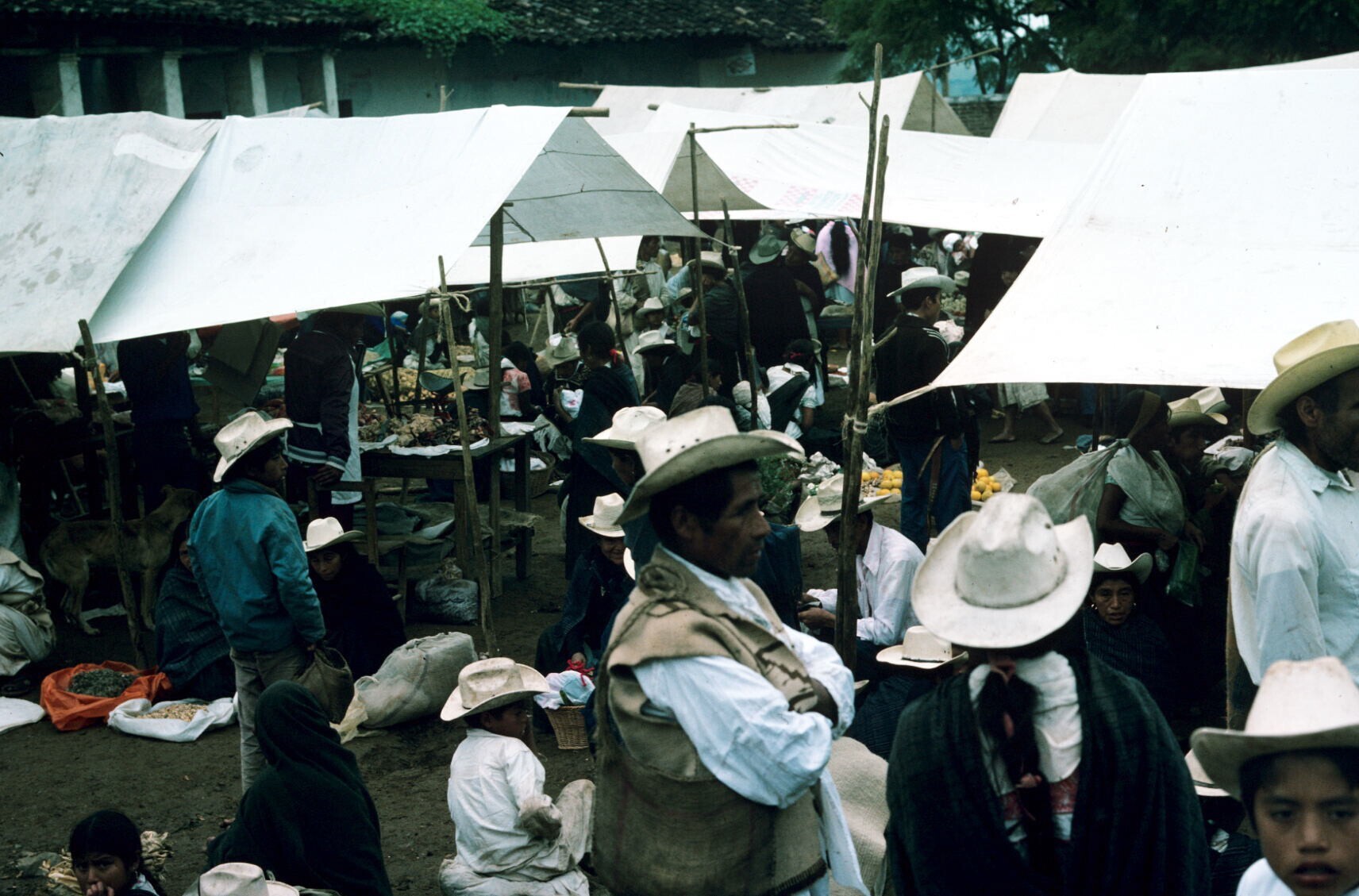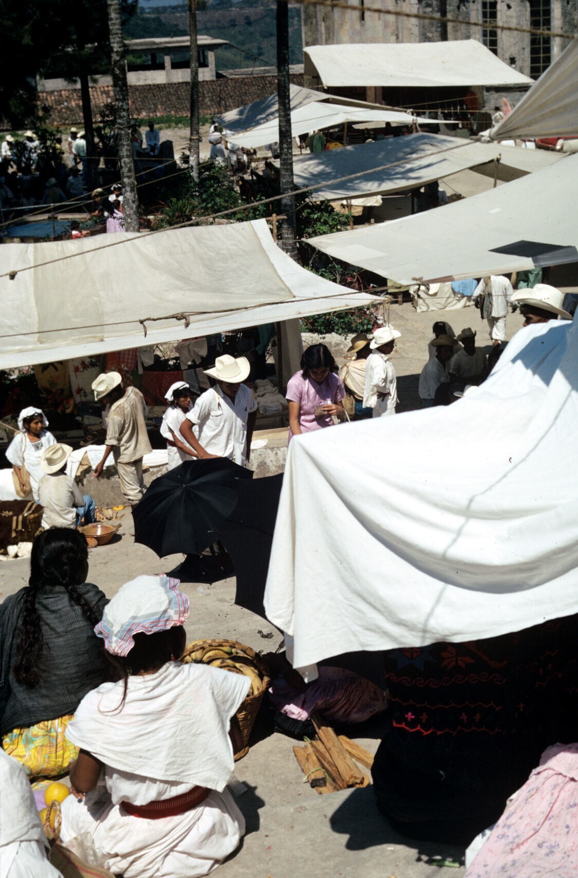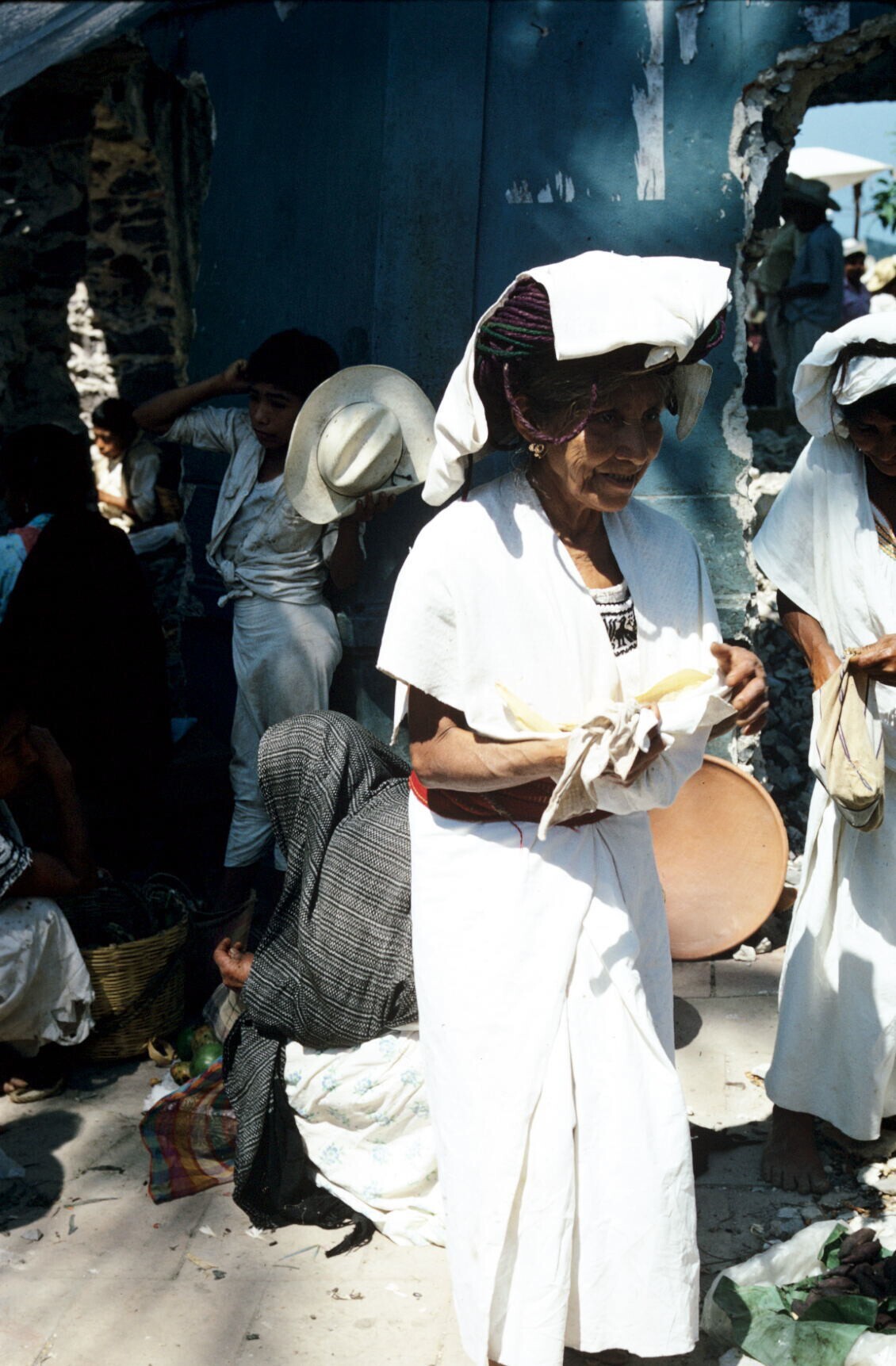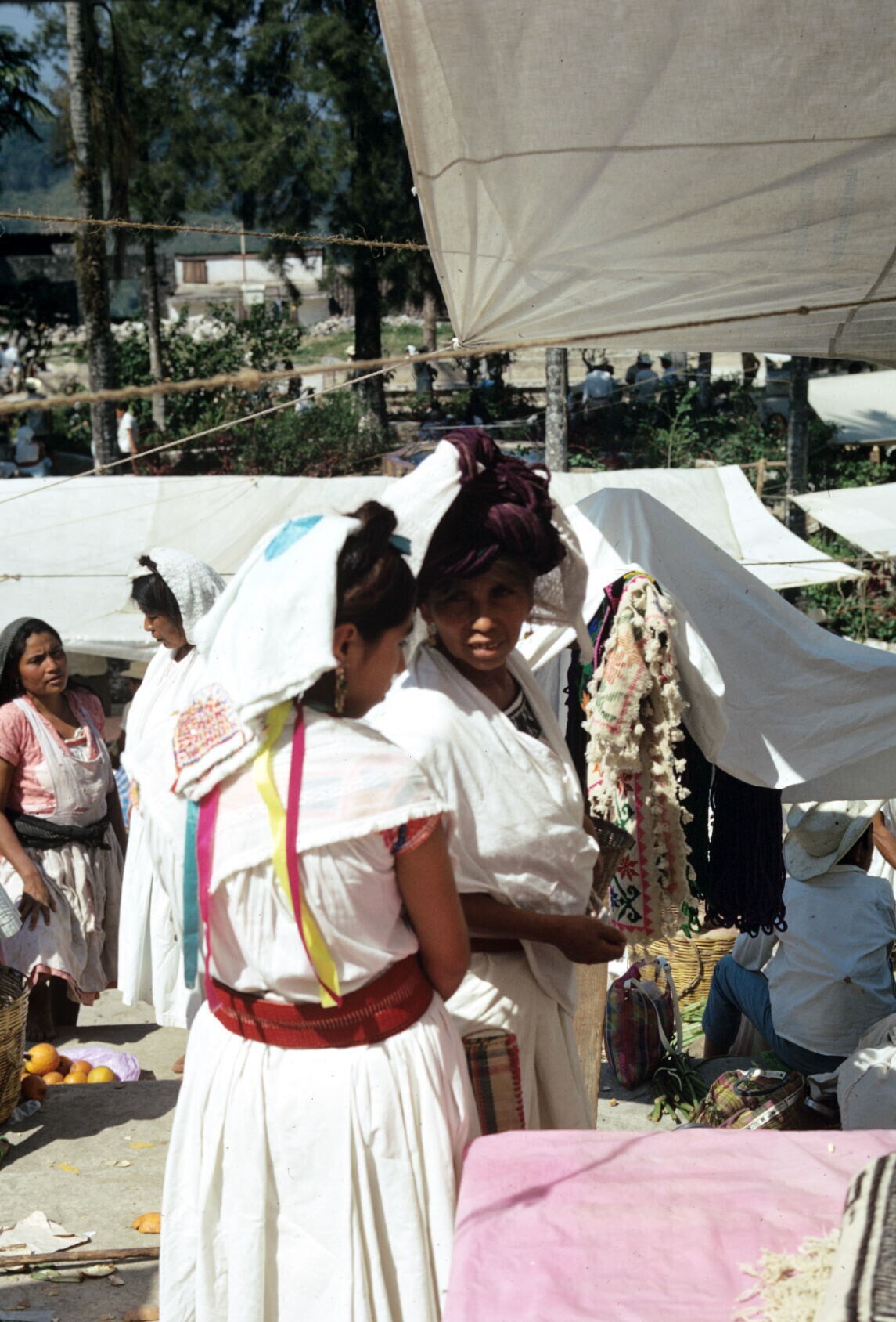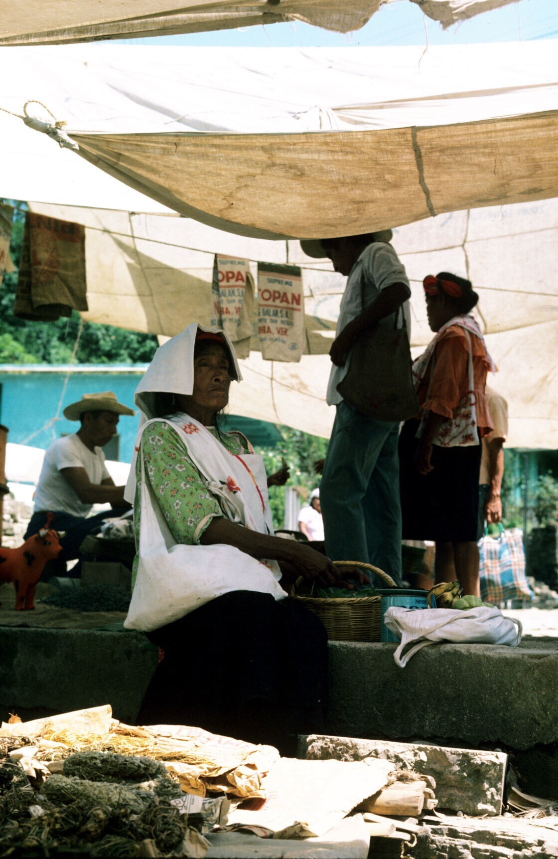 vrouwen op markt (NB hua'cal, draagmand)