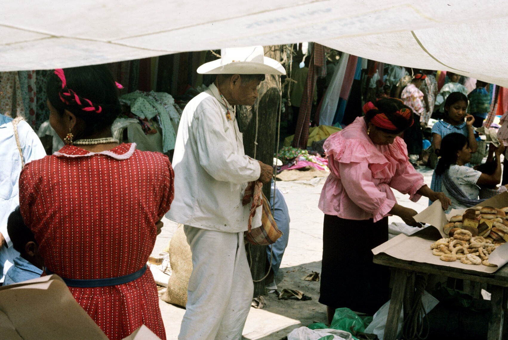 vrouwen op markt; NB typische haardracht met "petob"