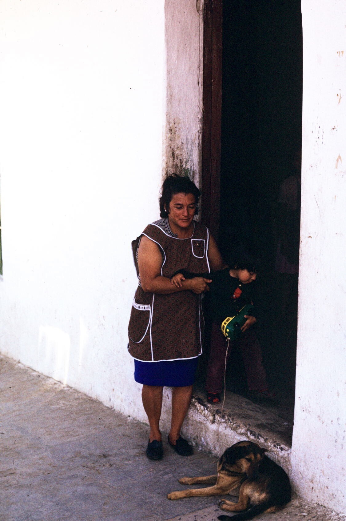 groep vrouwen en kinderen bij uitgang kerk