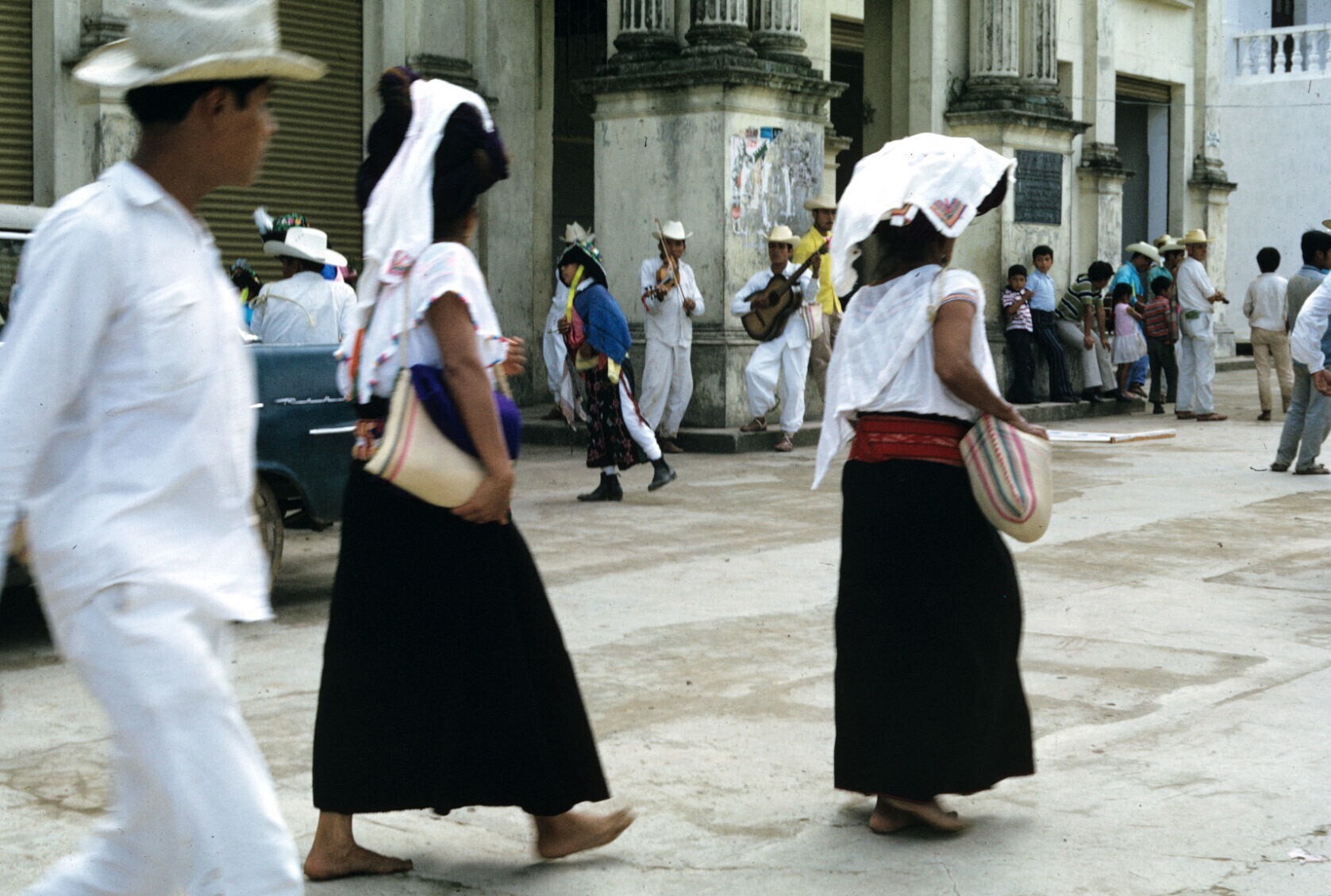 vrouwen in dracht Tancanhuitz, op rug gezien