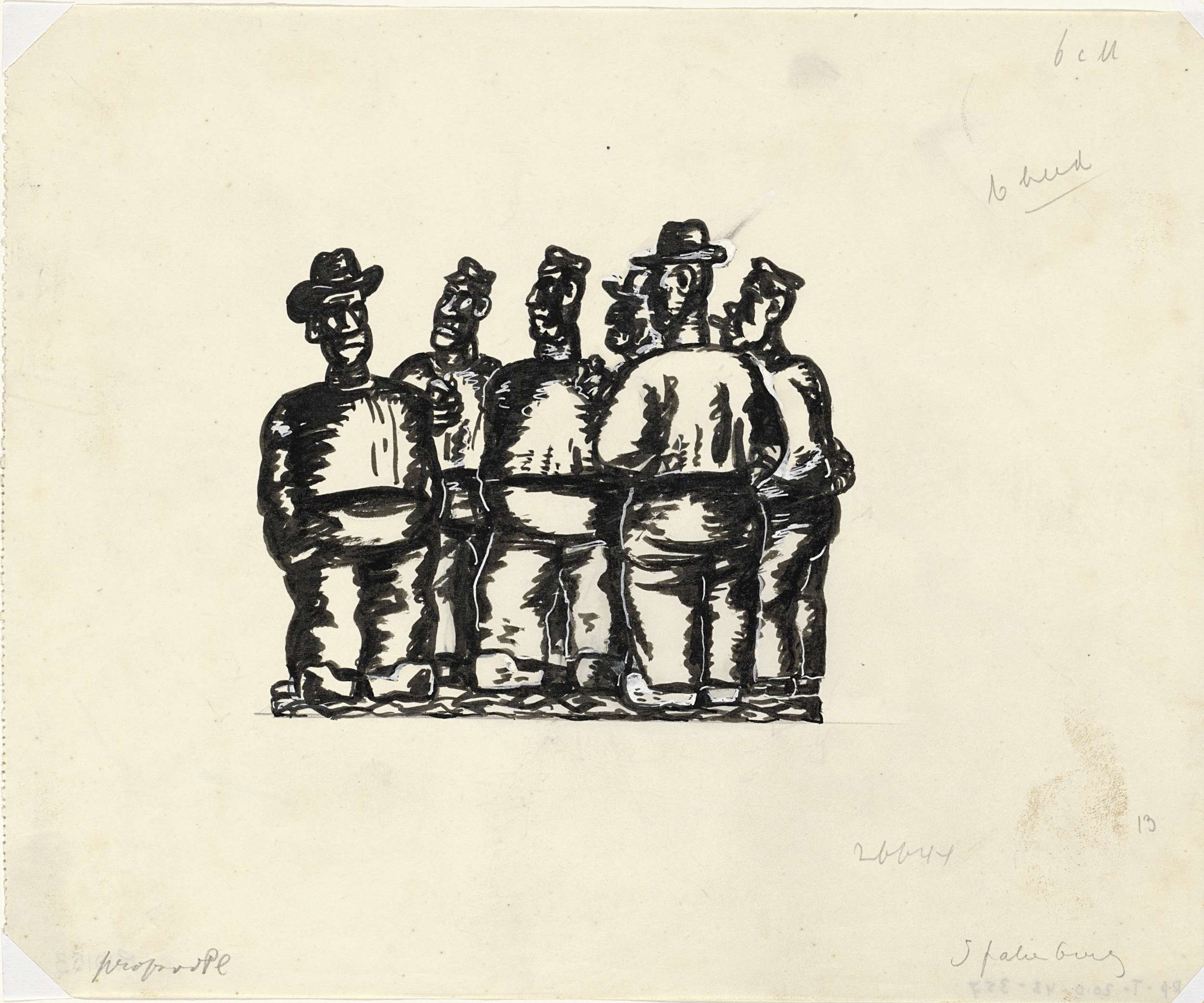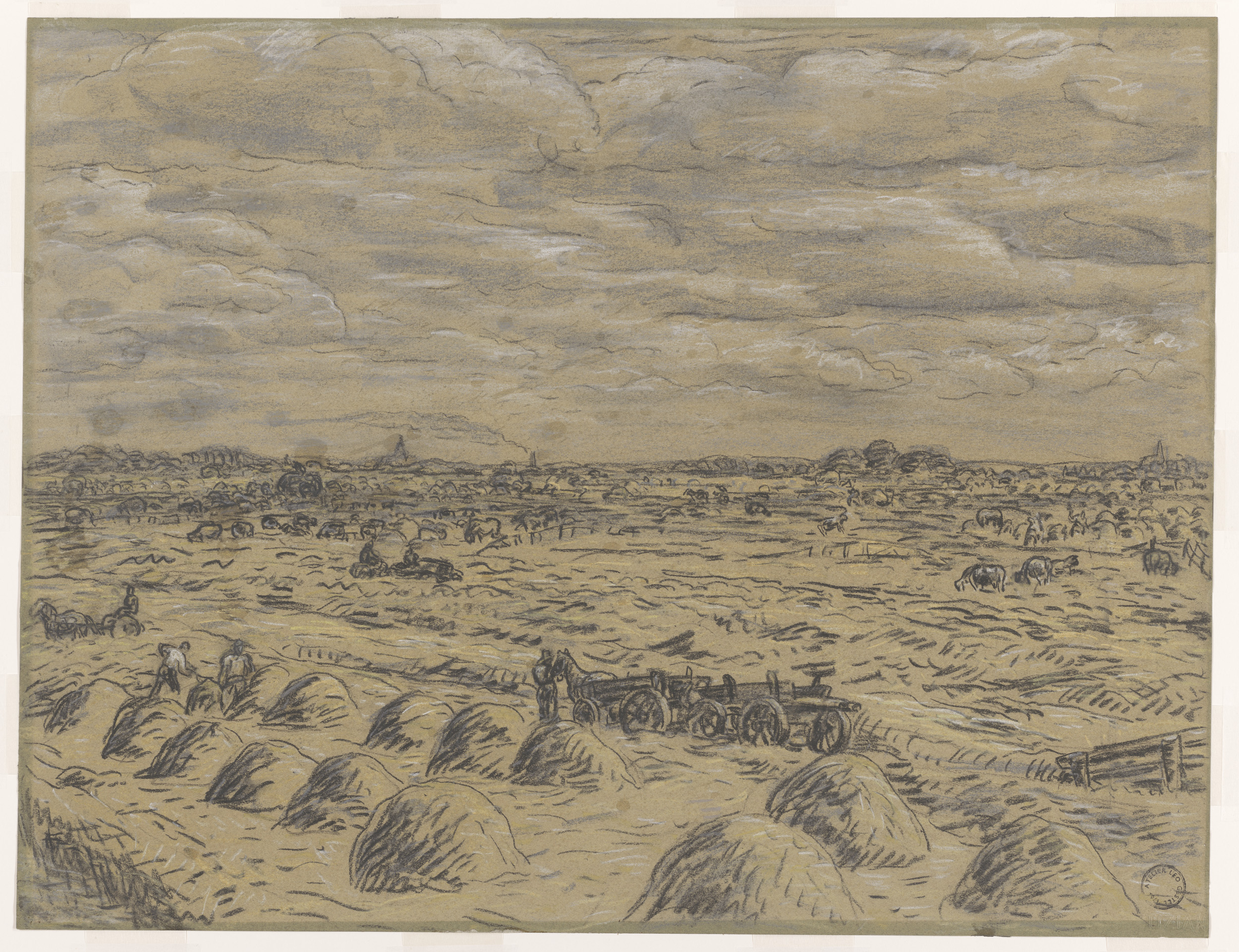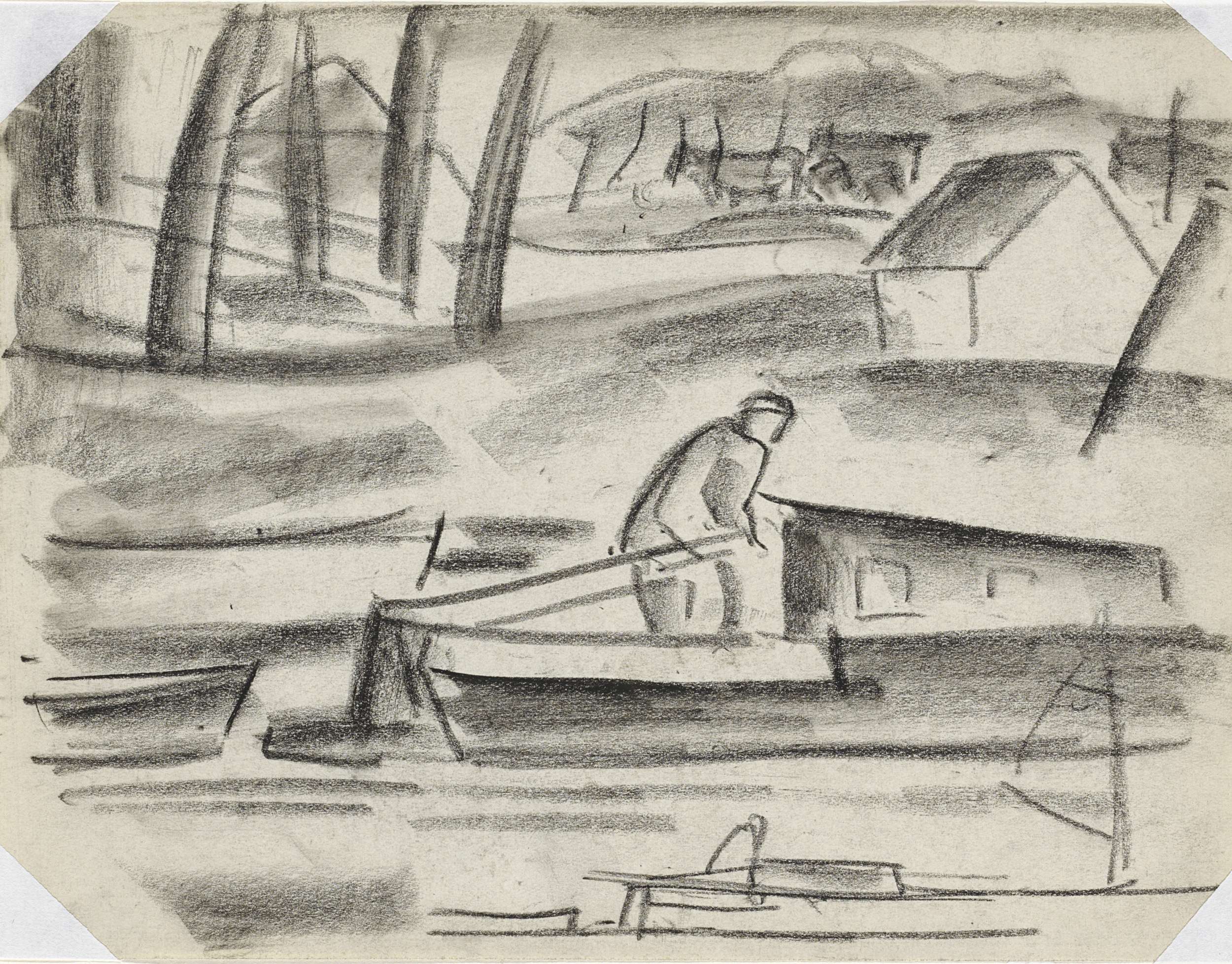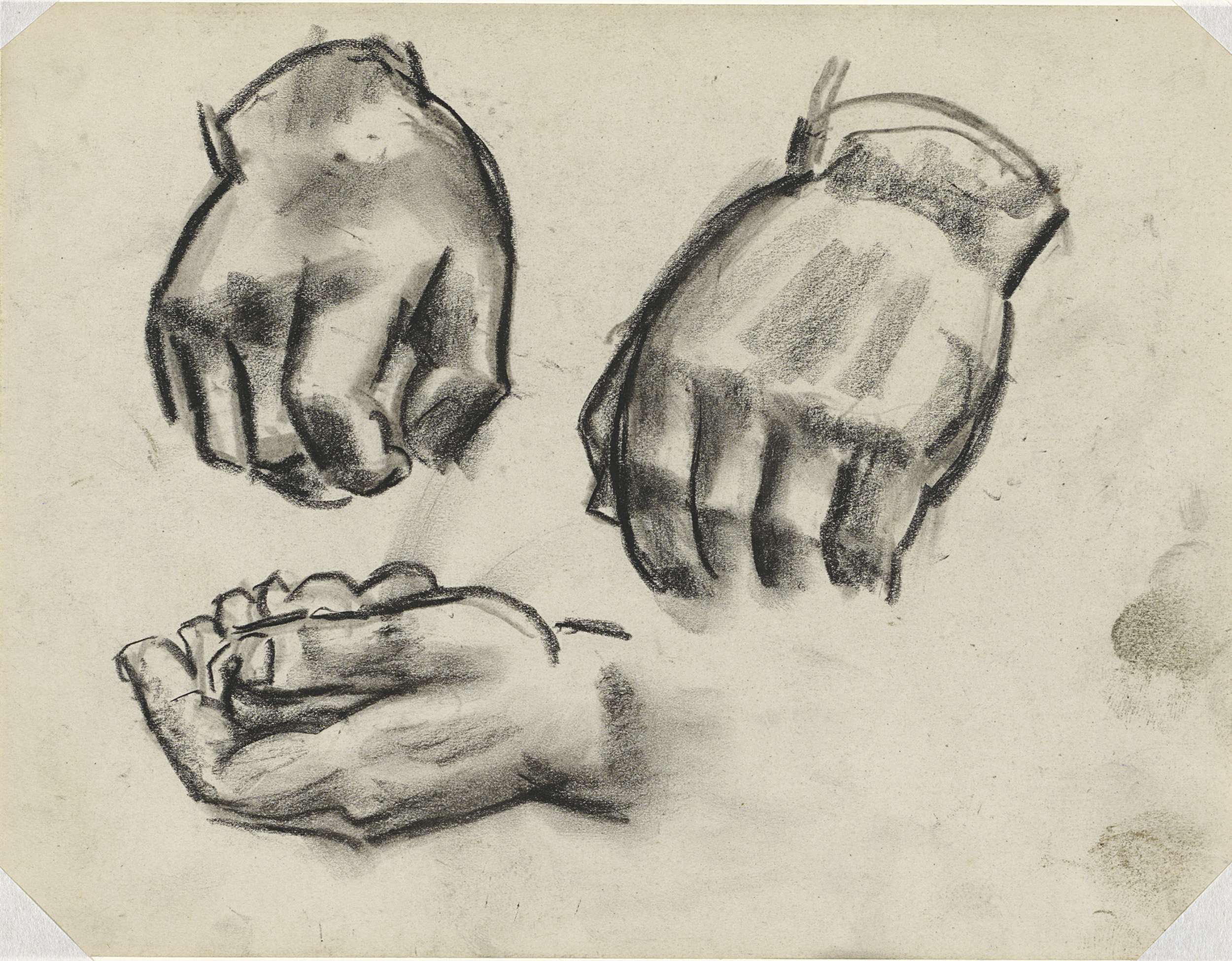 Studieblad met zeven schetsjes van gebukte aardappel...