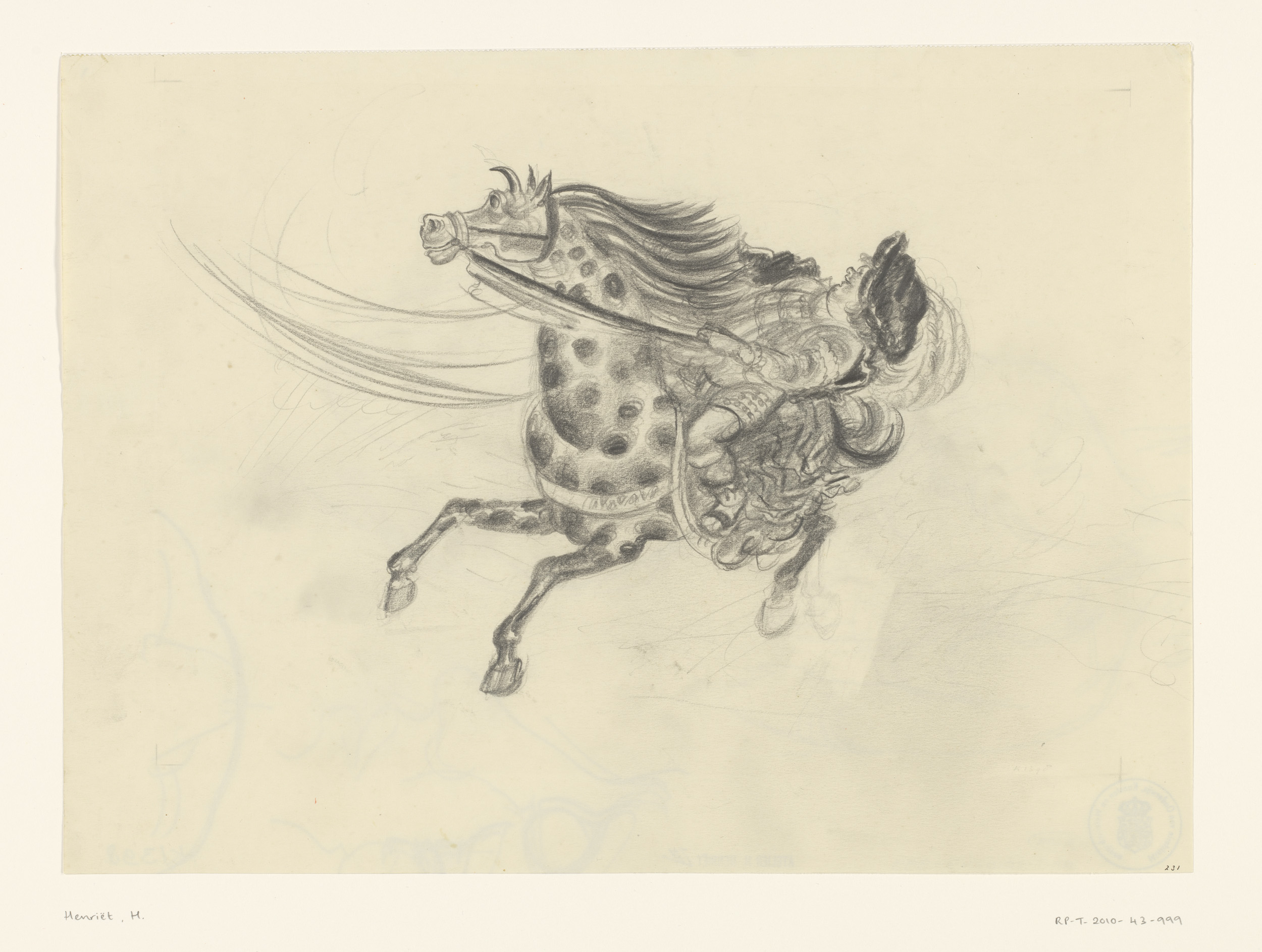 Zonder titel Steigerend paard met decoratieve bloeme...