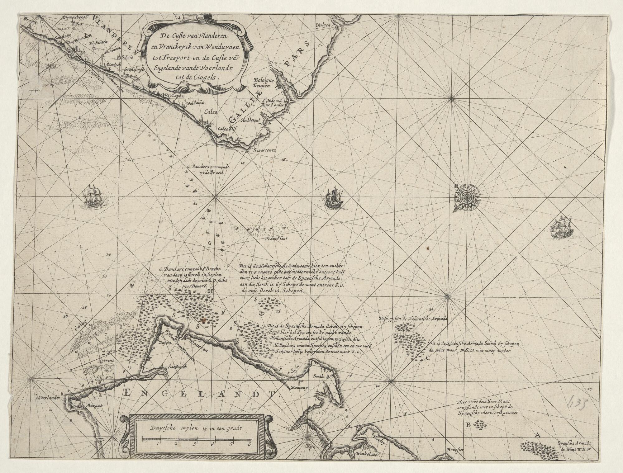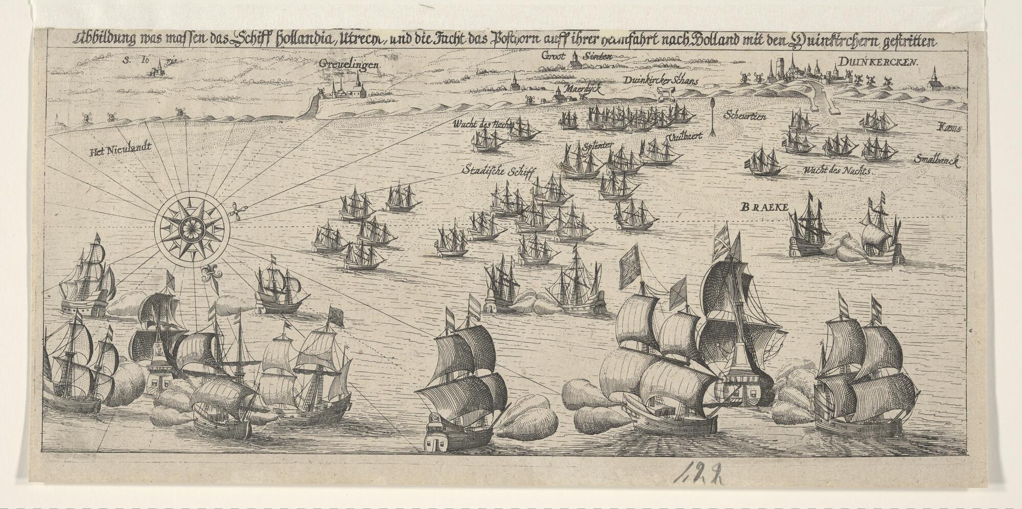 Kaart van de zeeslag bij Duins, met de posities der ...