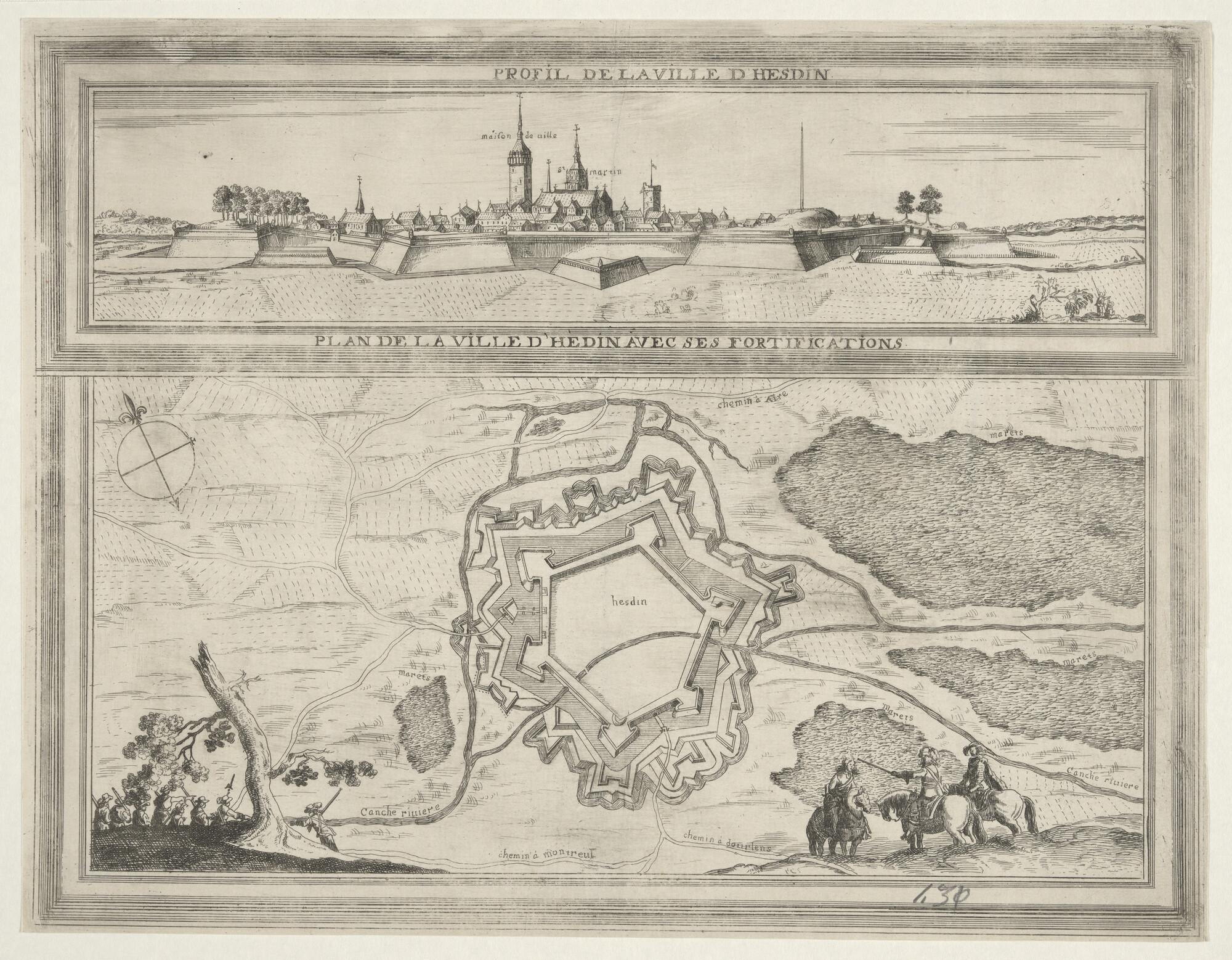 Gezicht op de stad en de fortificaties van Hesdin, o...