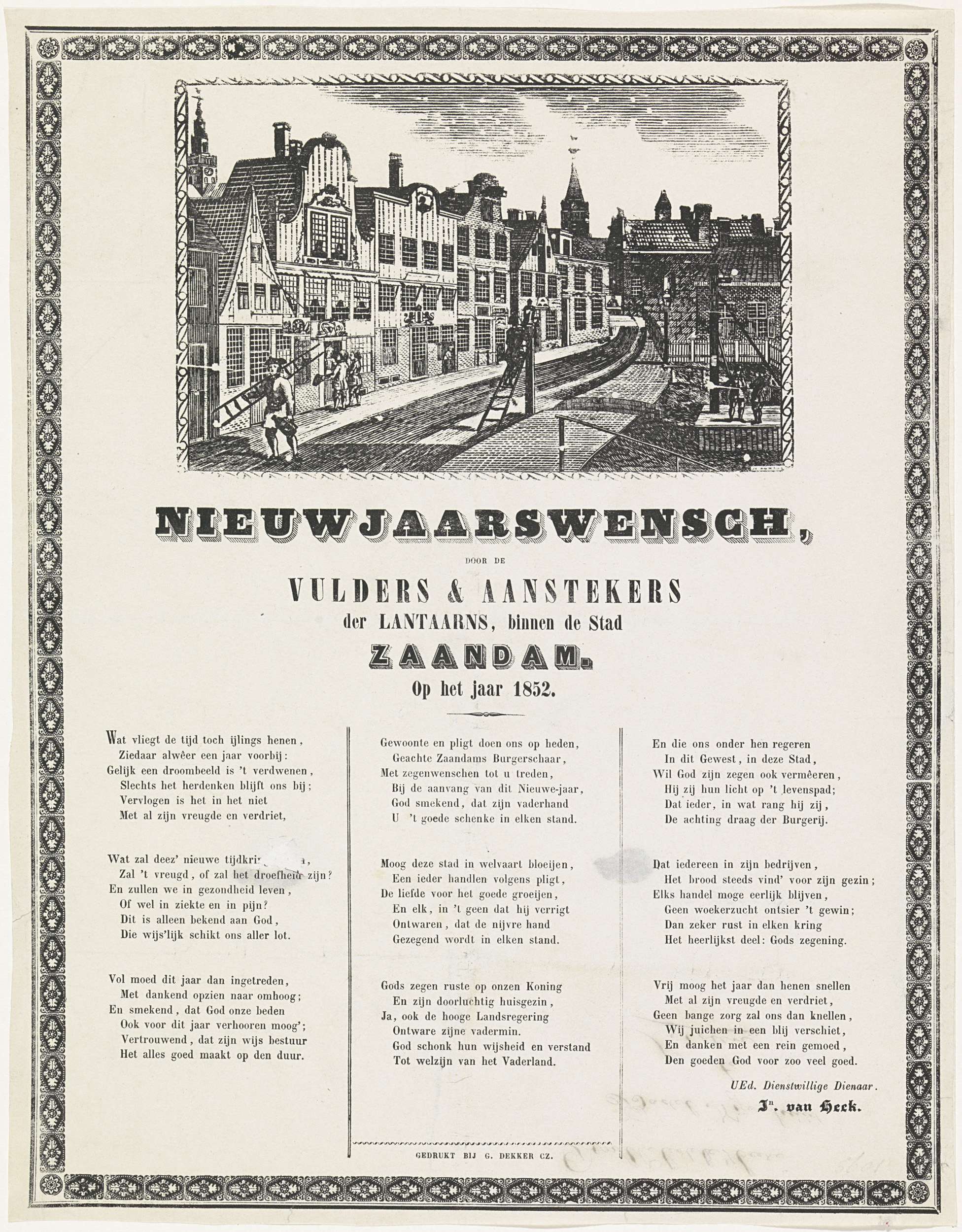 Nieuwjaarswens van de Amsterdamse straatvegers, 1853