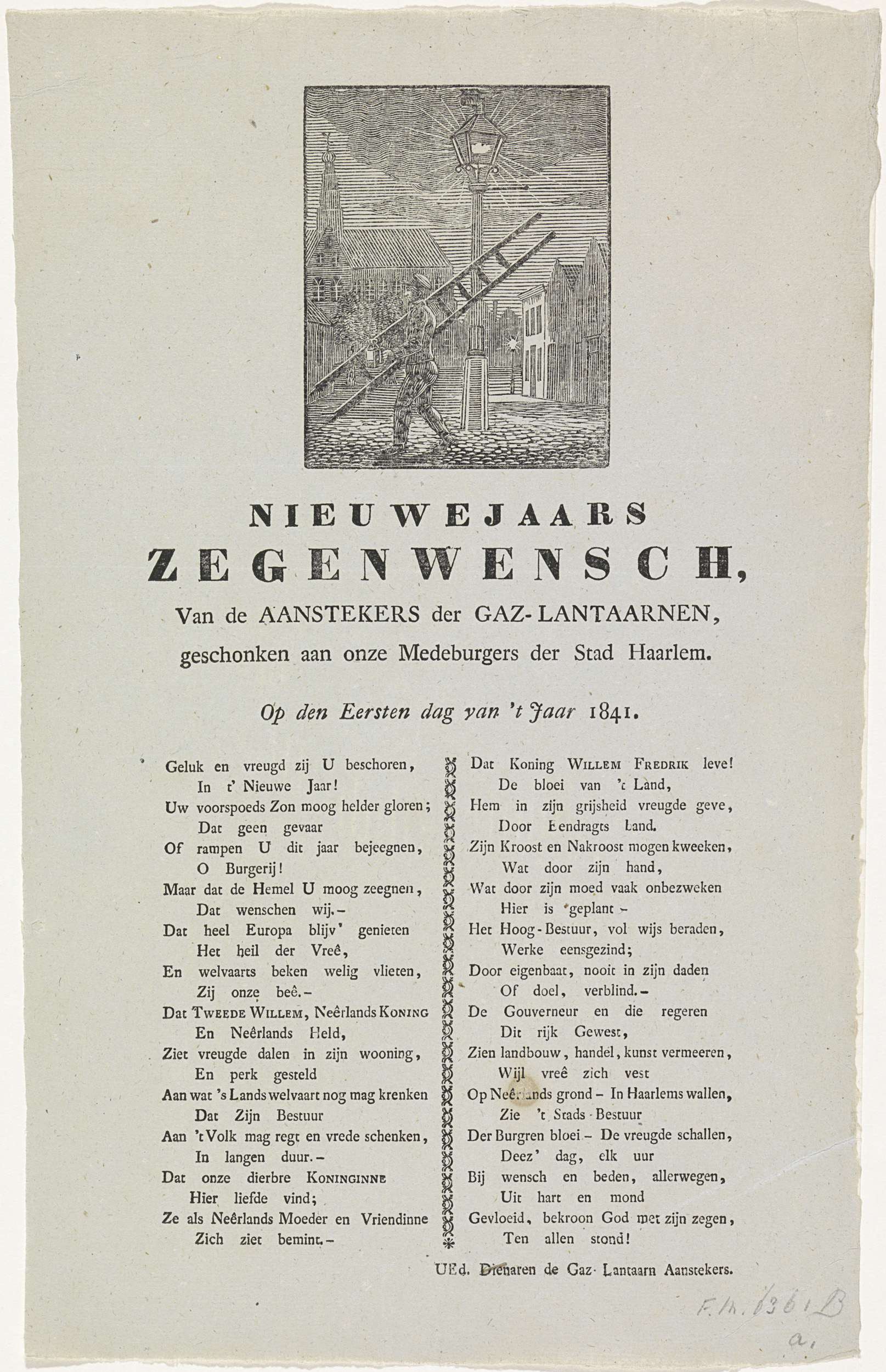 Nieuwjaarswens van de gaslantaarnopstekers van Haarl...