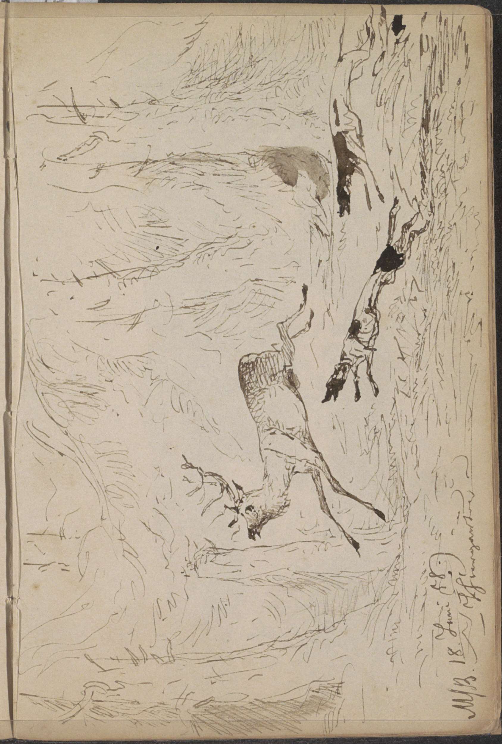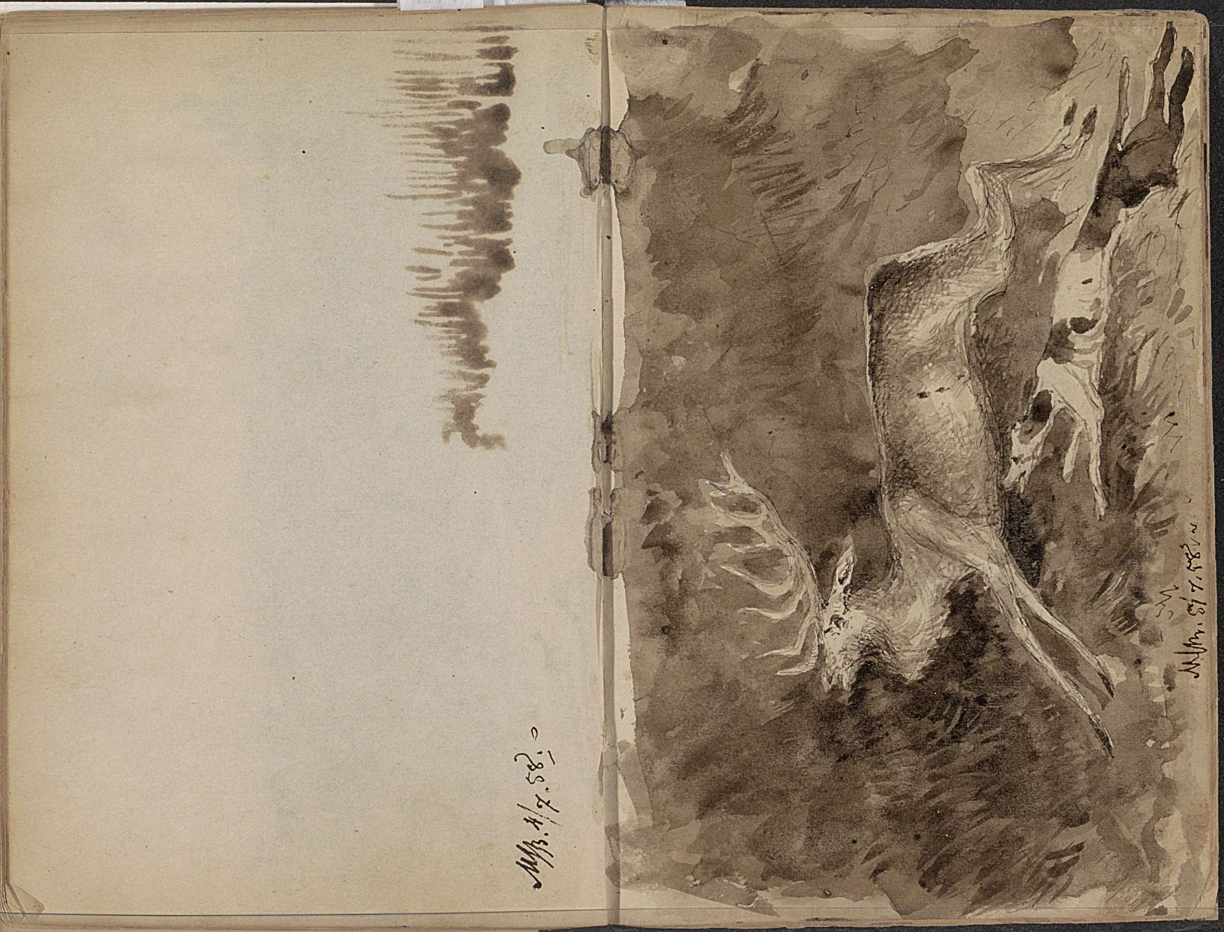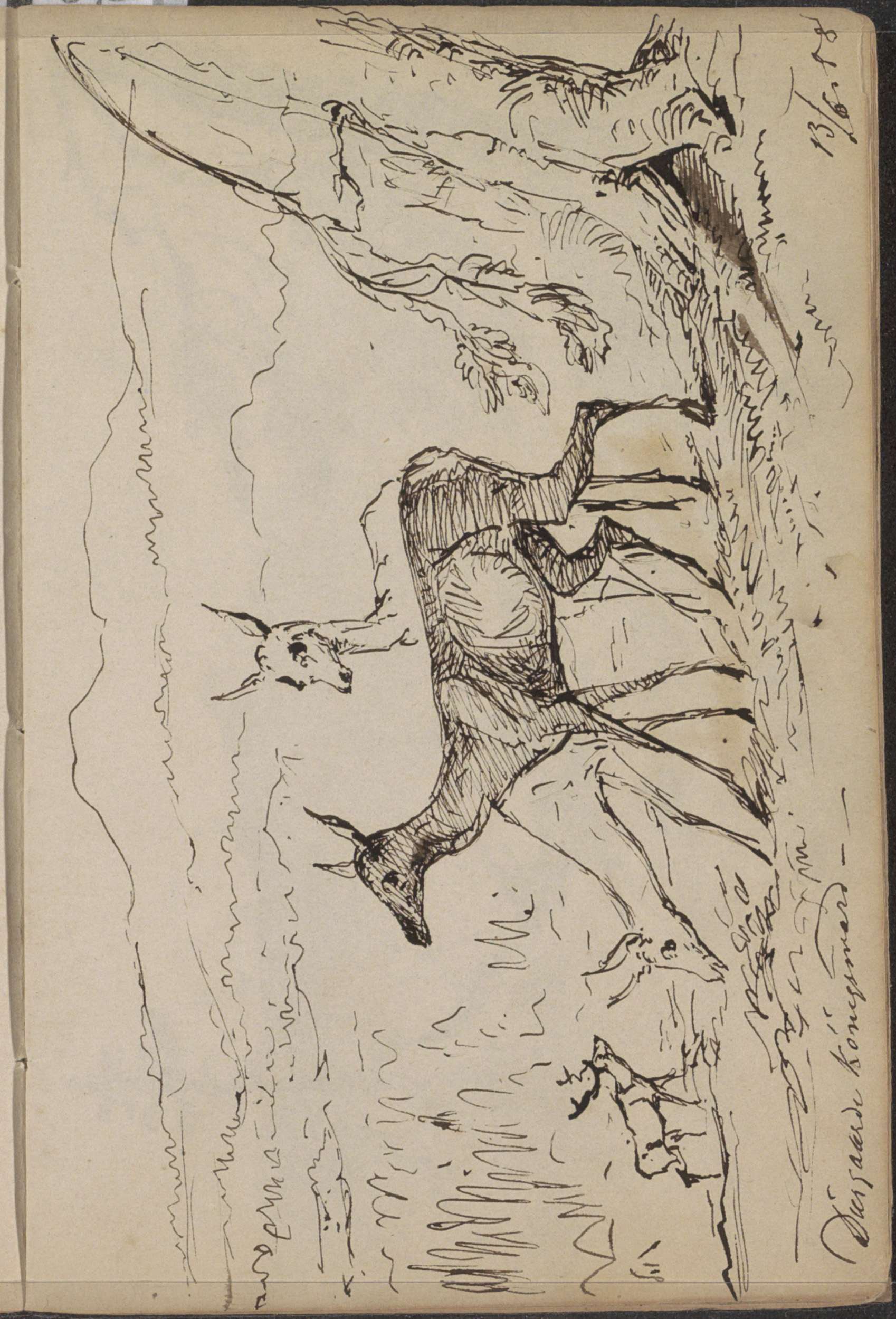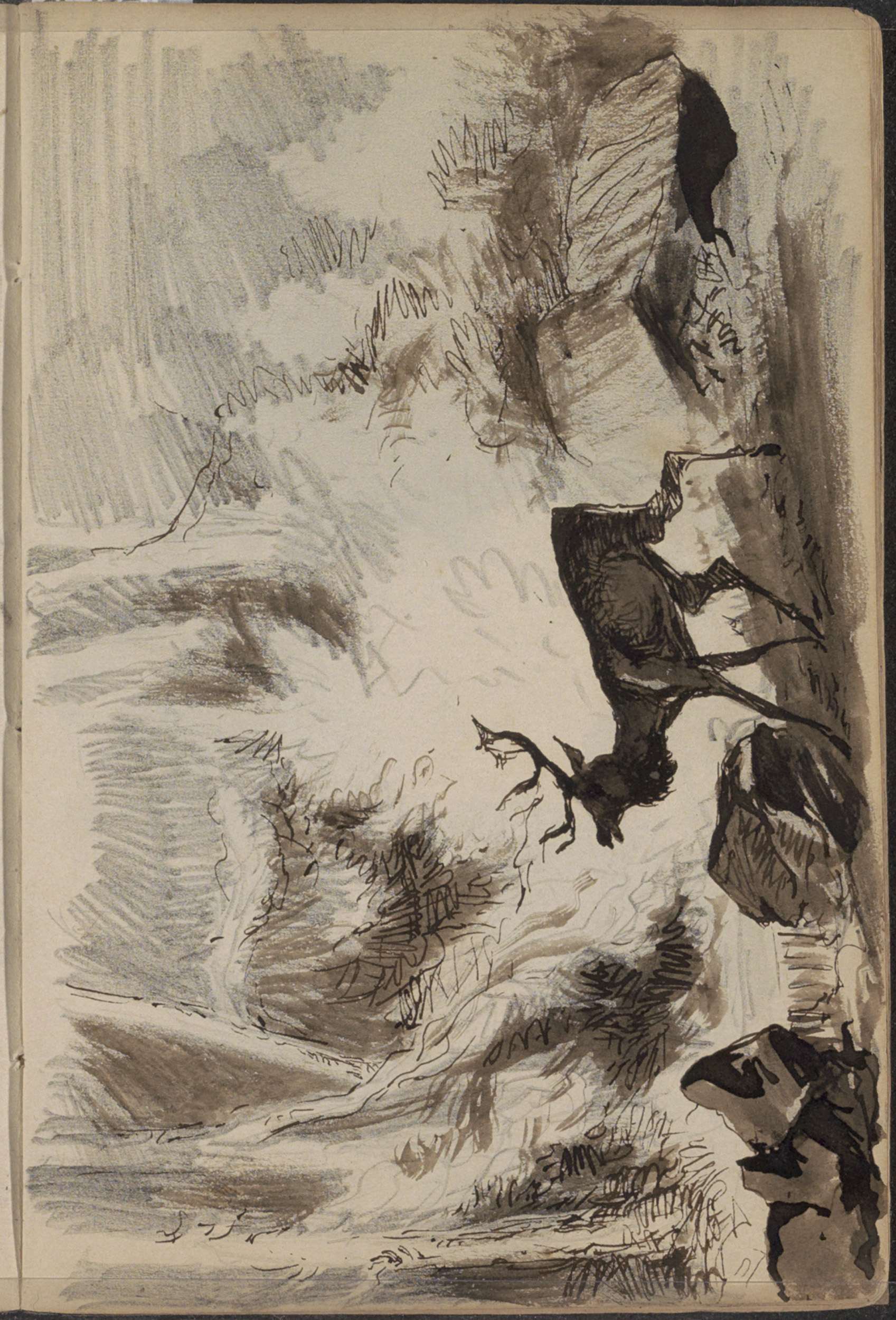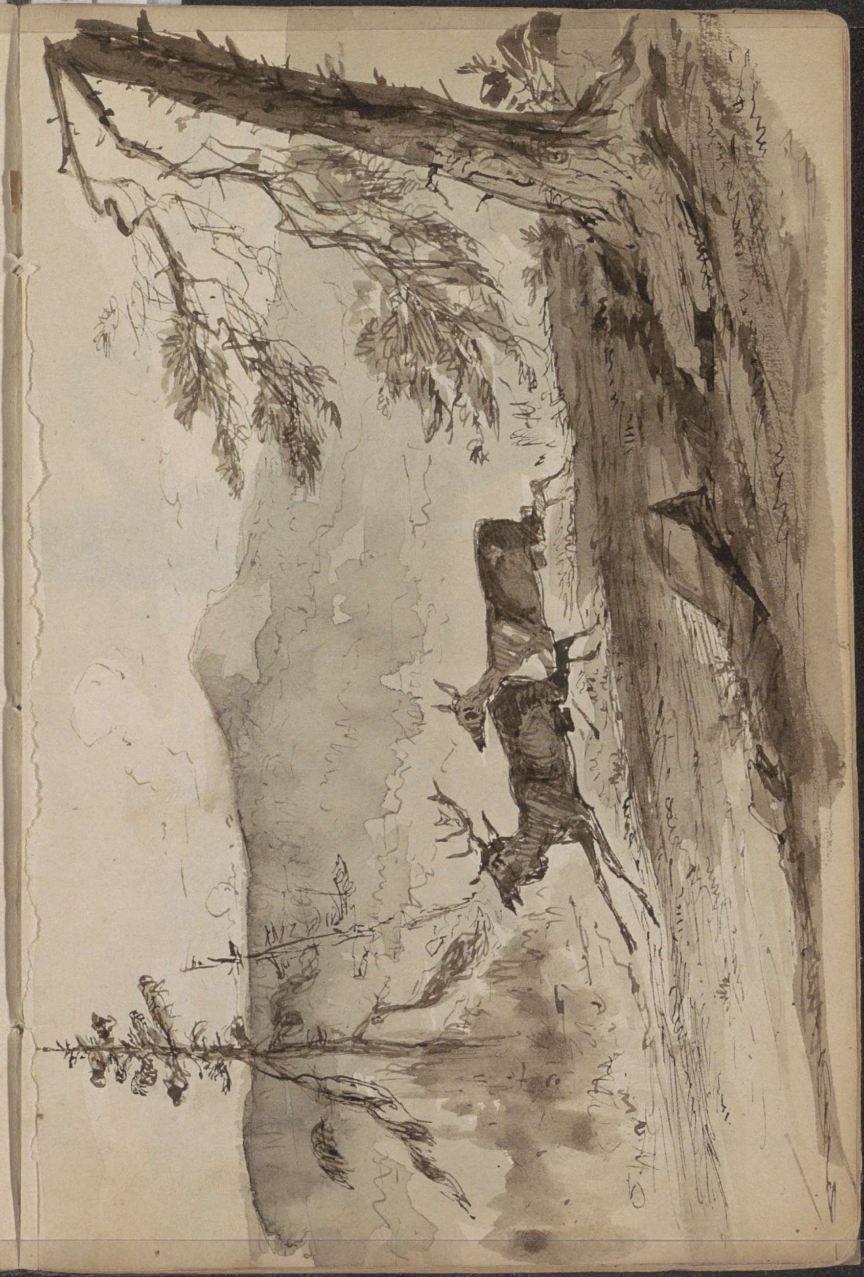 Landschap met een hert bij de rand van een beek