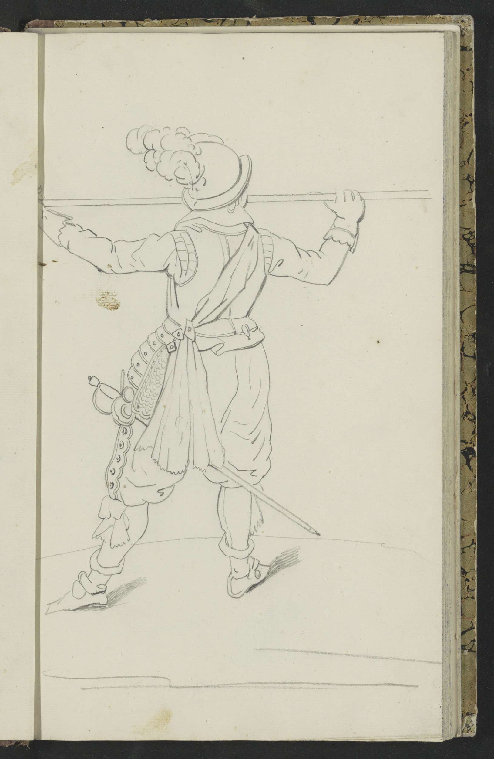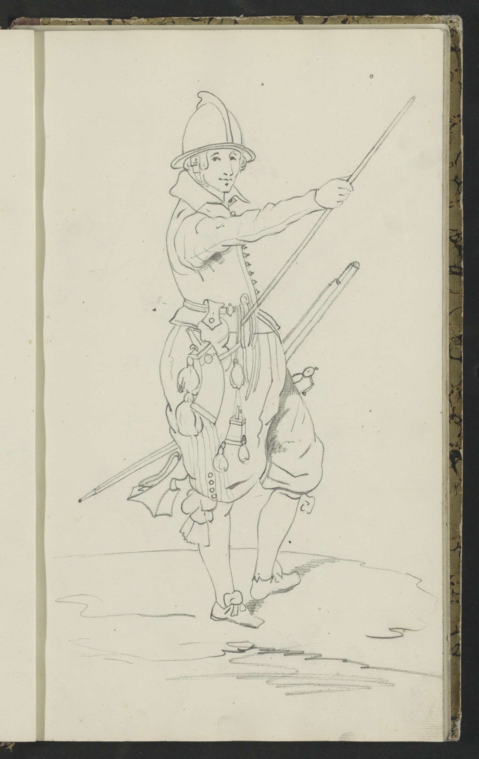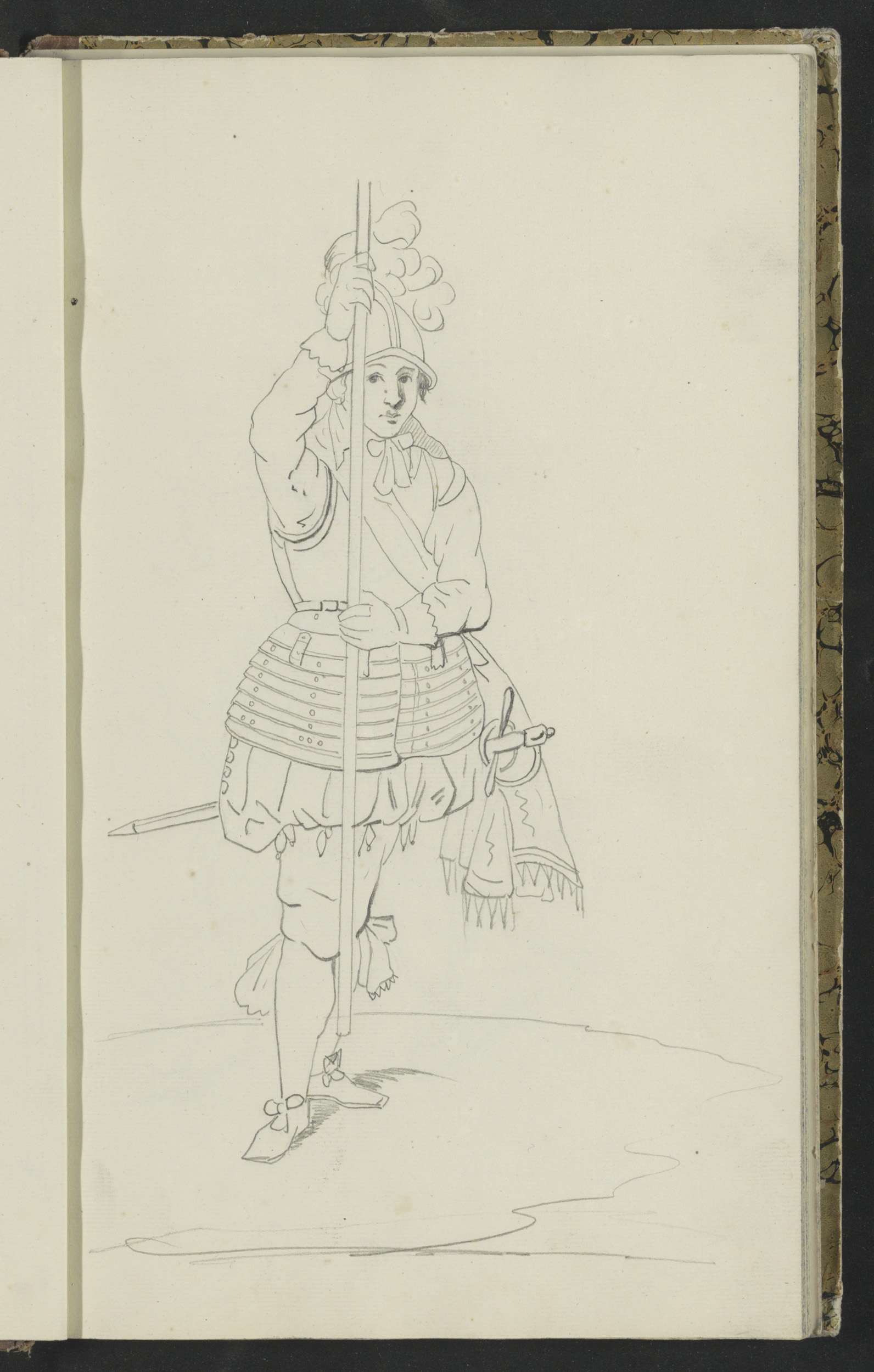 Soldaat die zijn spies met beide handen naar de gron...
