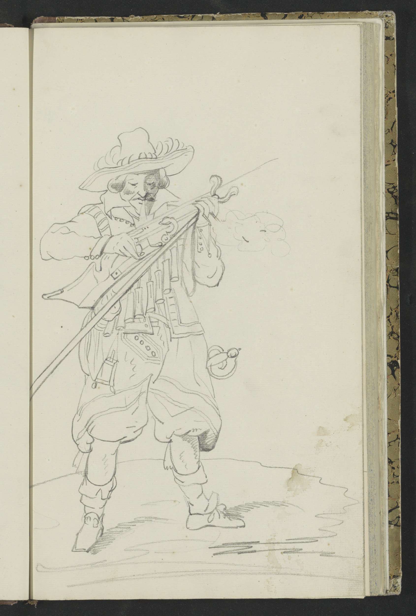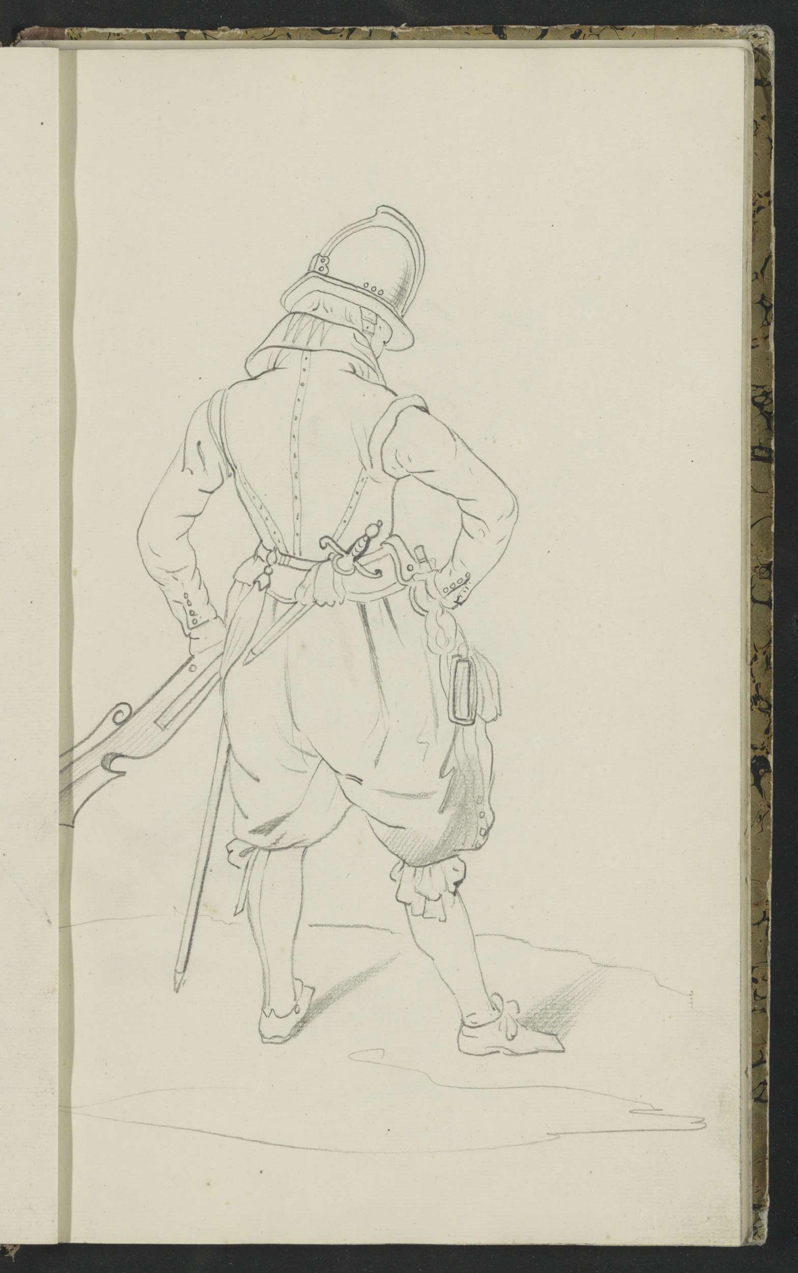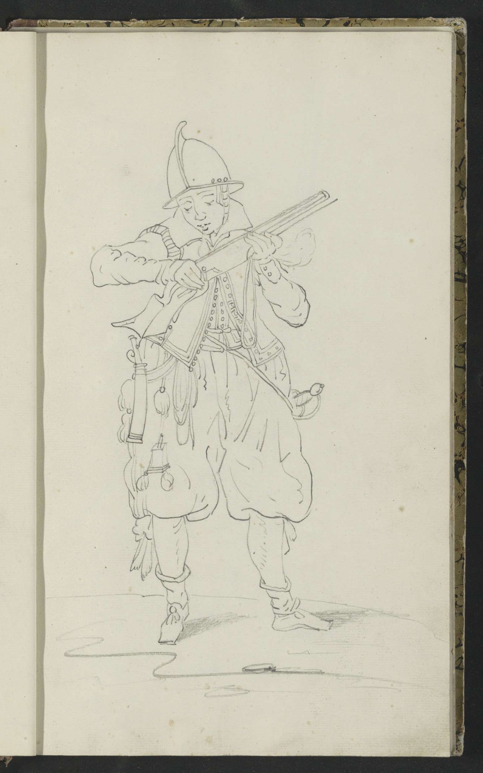 Soldaat die zijn spies met beide handen naar de gron...
