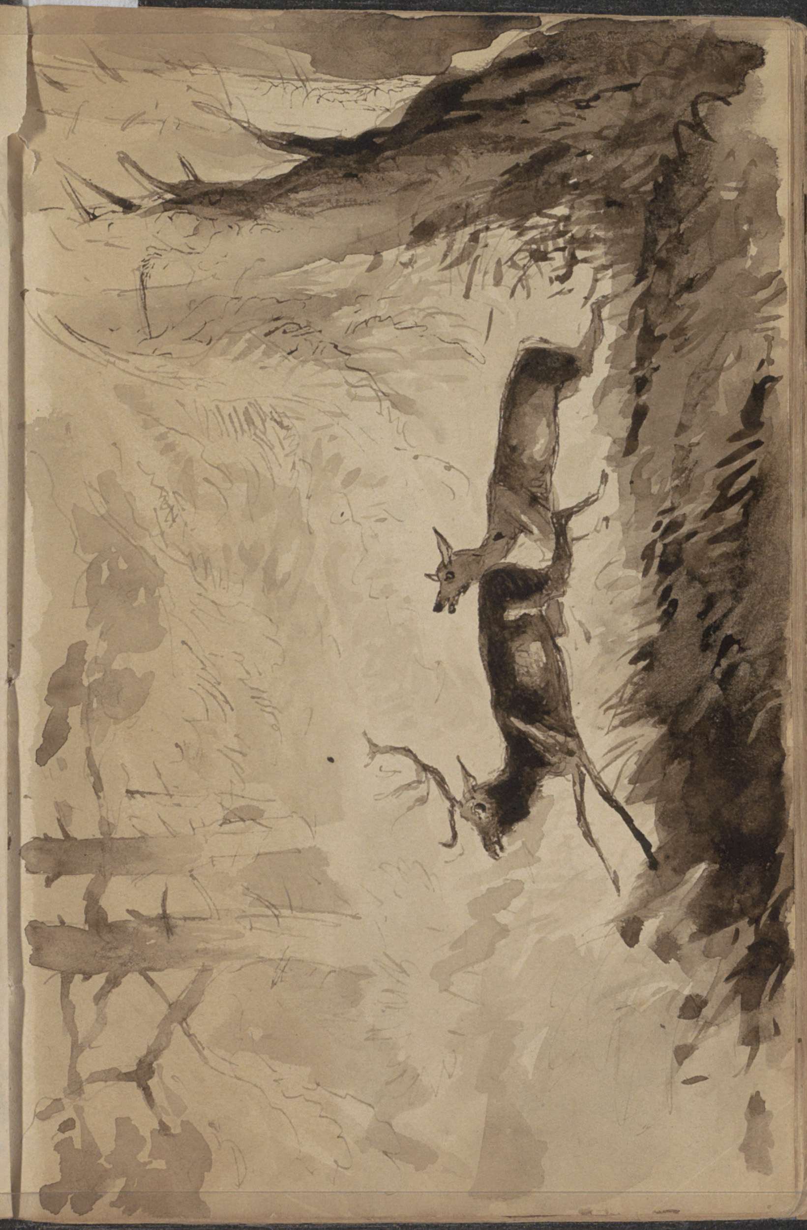 Landschappen met door honden opgejaagde herten