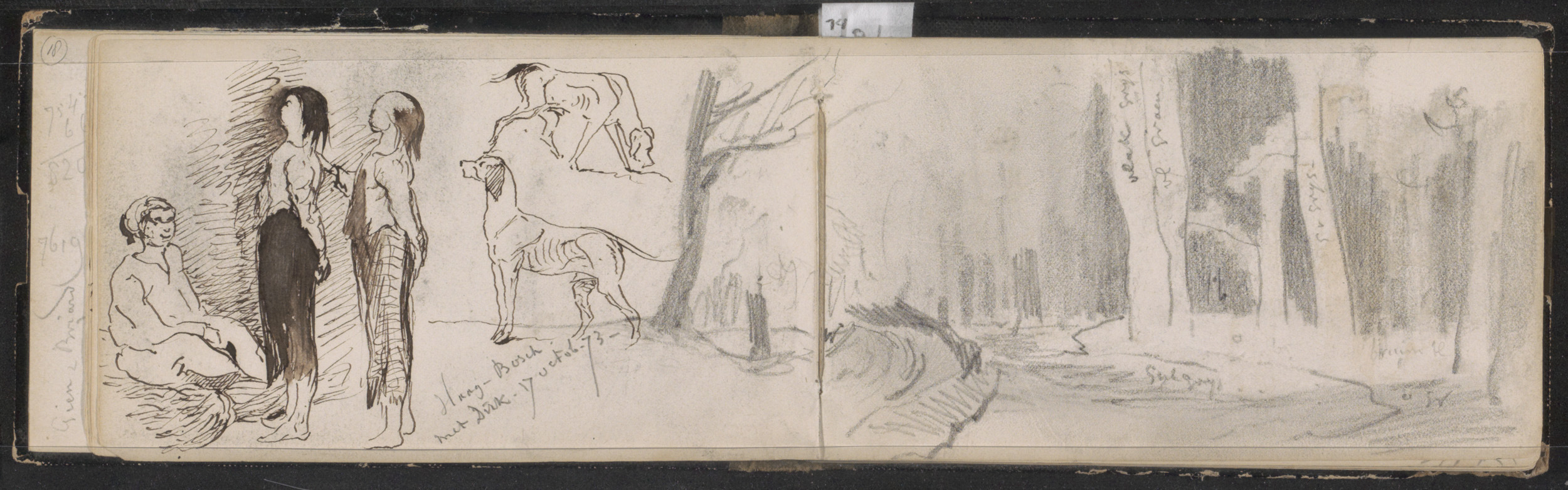 Laan in het Haagse Bos, honden en drie vrouwen