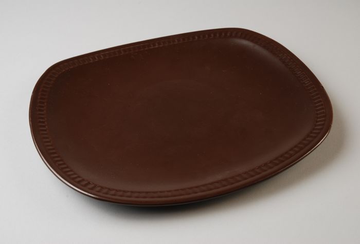 Donkerbruine gebakschaal met geribbelde, iets hellen...