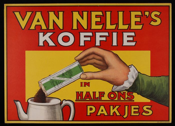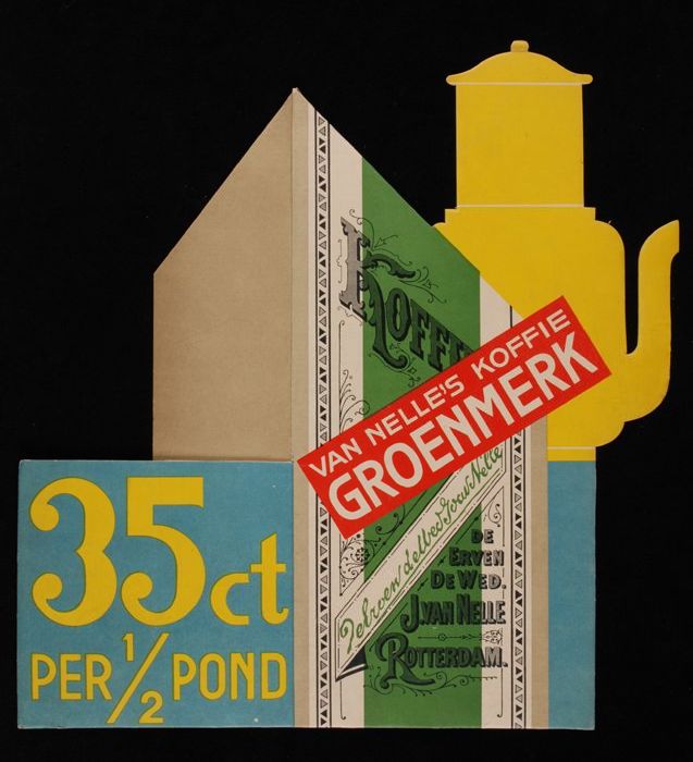 Op etalagepak te steken reclameborden Van Nelle met ...
