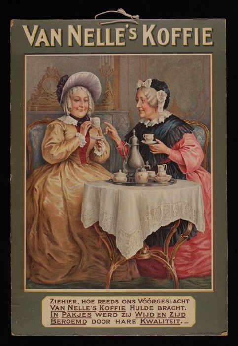 Kartonnen reclamebord Van Nelle met drie dames in st...