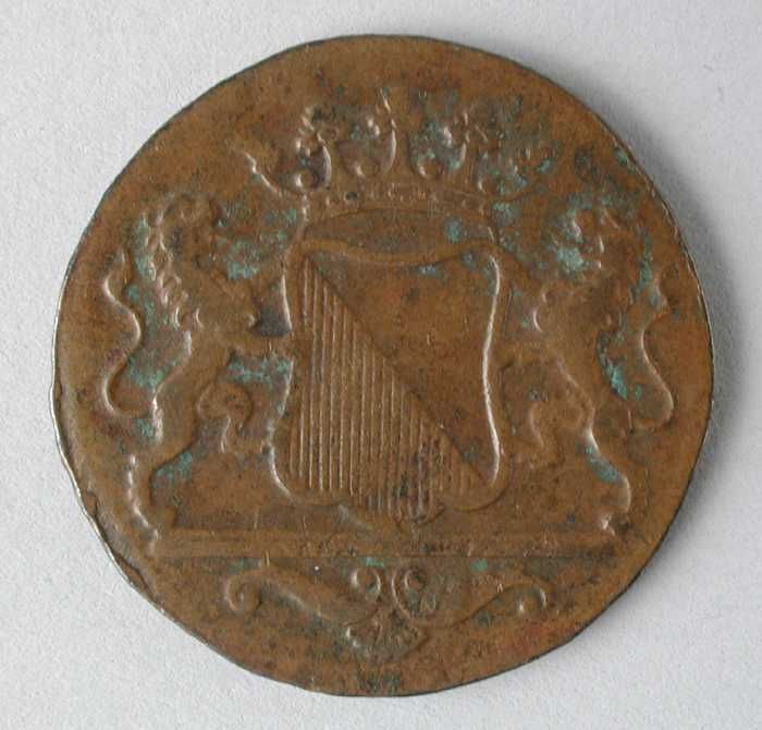 Halve duit, munt van de VOC, geslagen in Holland