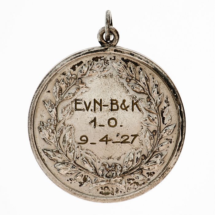Medaille Van Nelle, voetbal, met "E.V.N. - B&K 1-0. ...