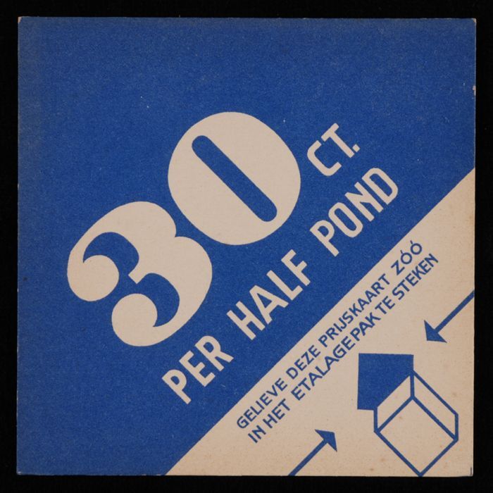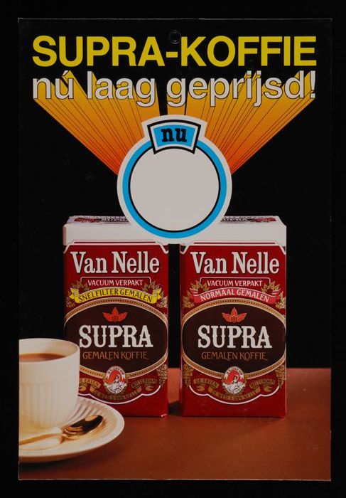 Op etalagepak te steken reclamebord Van Nelle met "2...