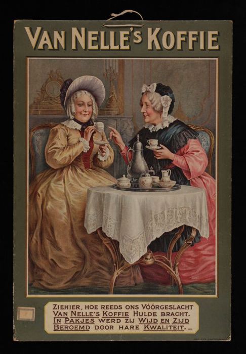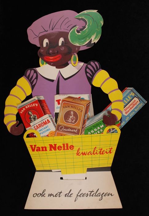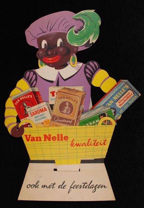 Reclamebord Van Nelle met karikaturale Zwarte Piet e...