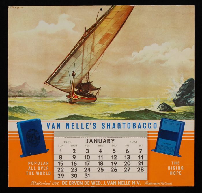 Reclamebord en kalender voor 1961 van Van Nelle met ...