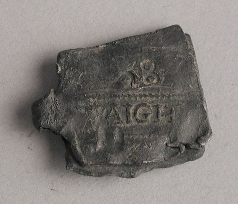 Linnenlood, deelbewerkerslood met "A" van Augsburg e...