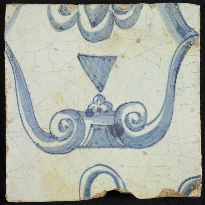 Tegel van schoorsteenpilaster, blauw op wit, deel va...