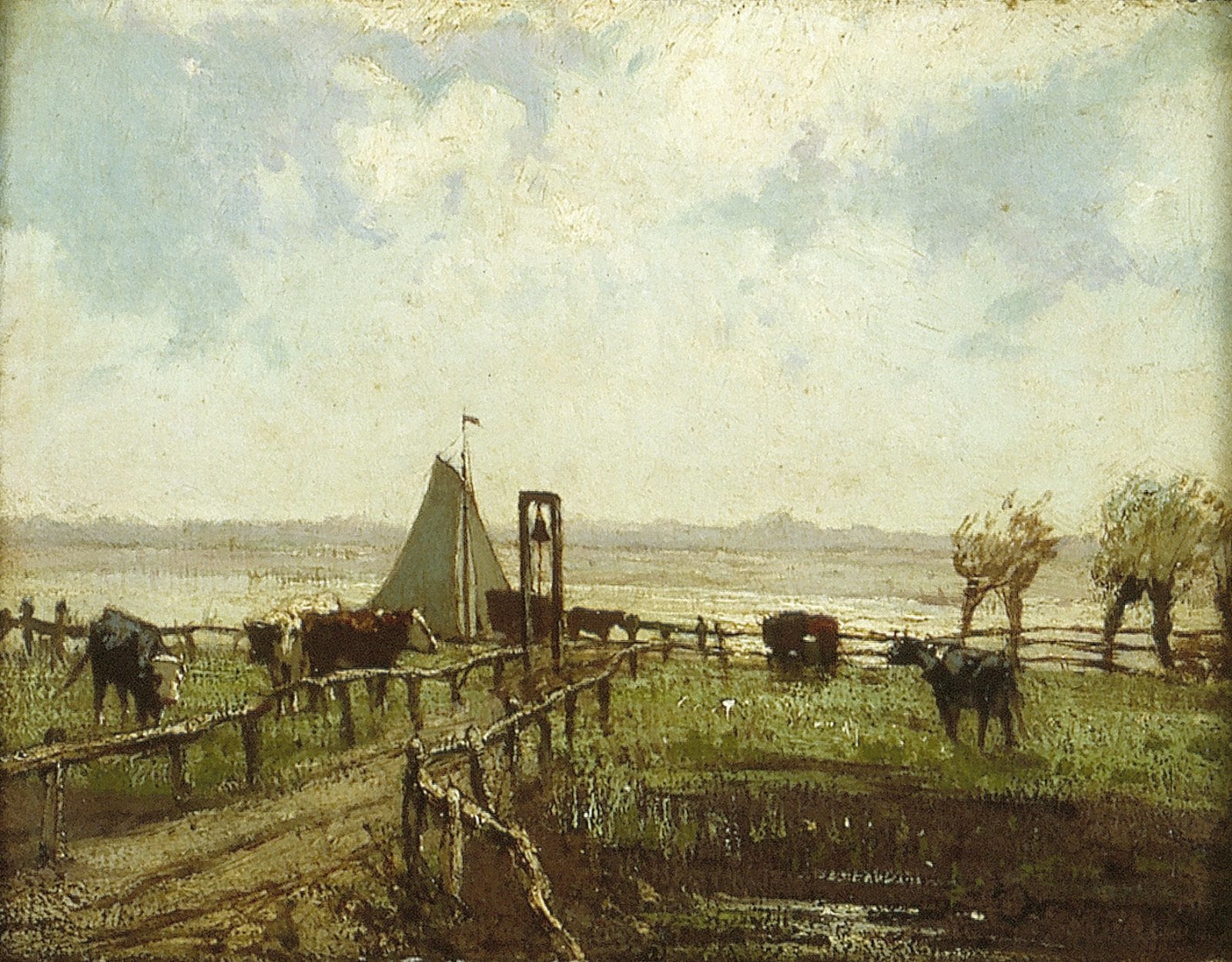 Rivierlandschap met meerplaats voor veer