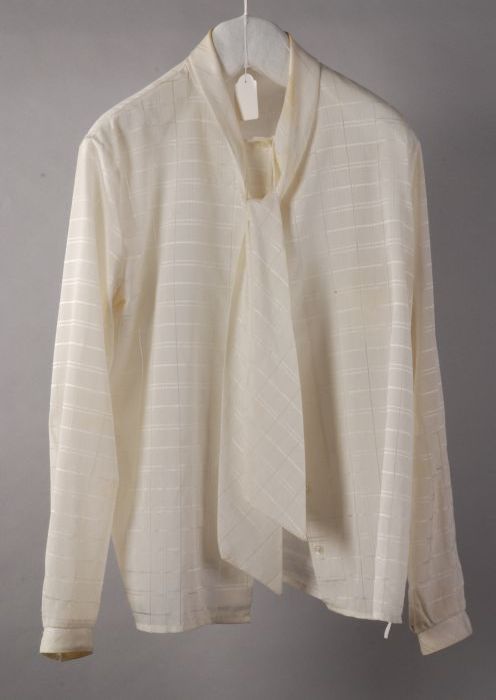 Crème damesblouse met lange mouwen en sjaalkraag