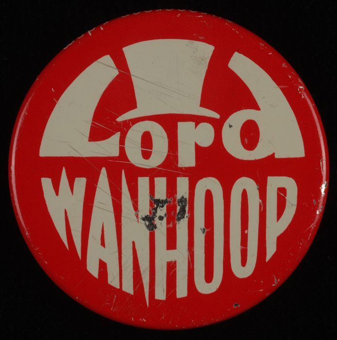 Rode button met opschrift "Lord Wanhoop"