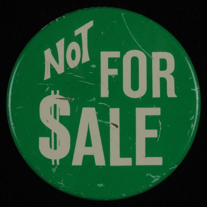 Groene button met in witte letters "Not for Sale"