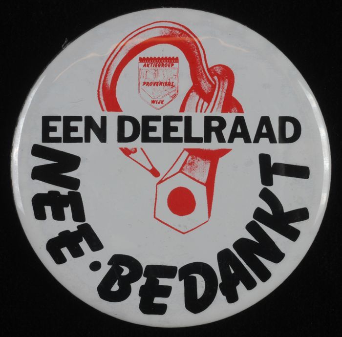 Button met "EEN DEELRAAD NEE BEDANKT"
