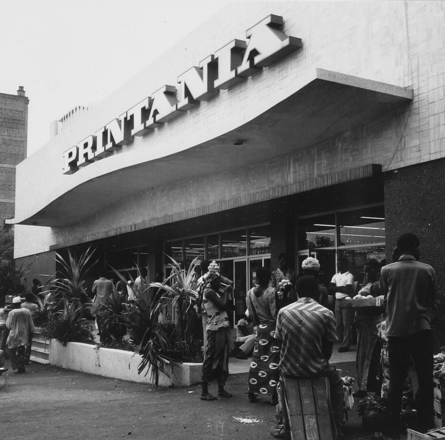 Straatventers bij de ingang van "Printania"-warenhuis