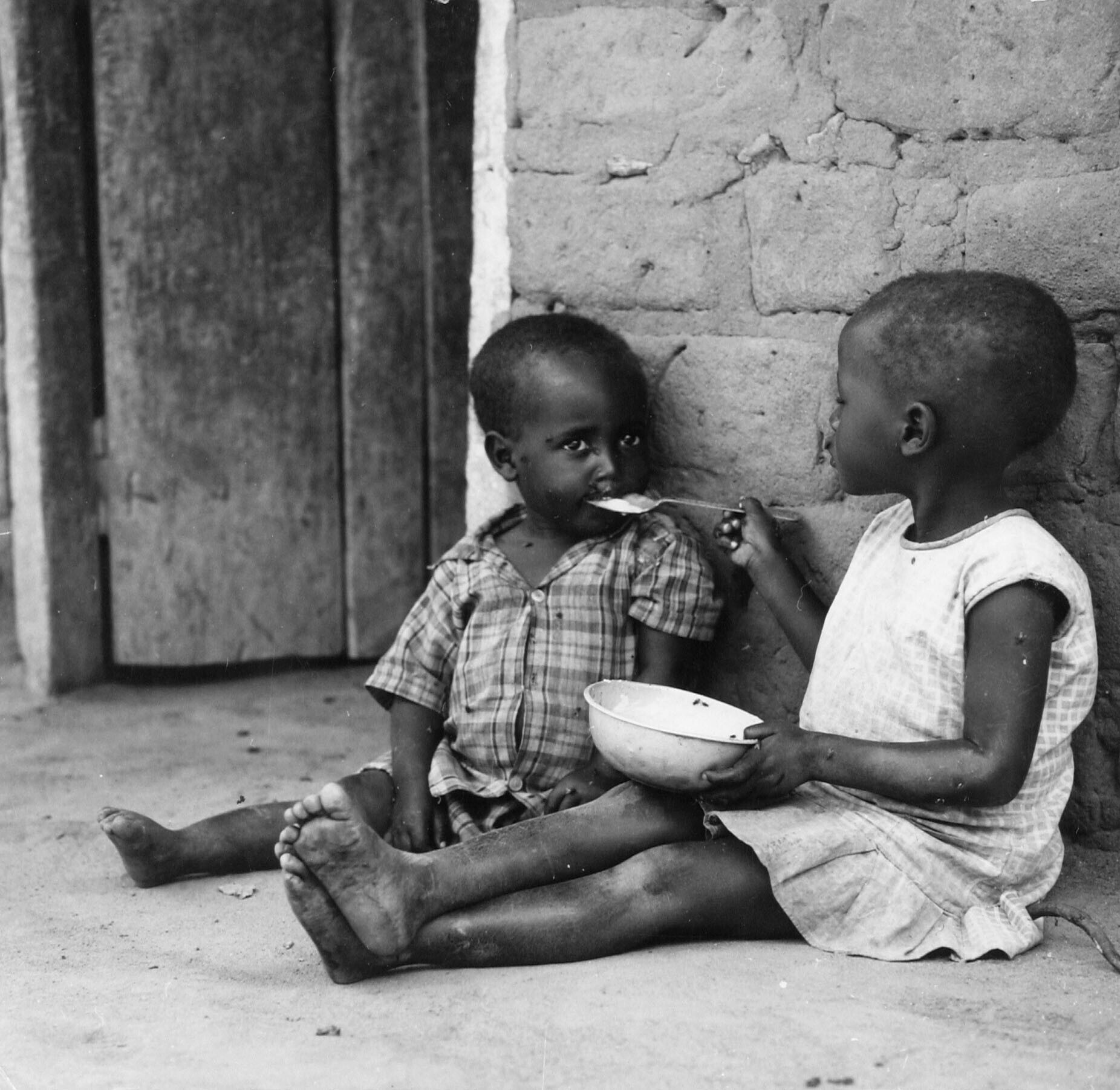 Twee Kamba kinderen aan de maaltijd