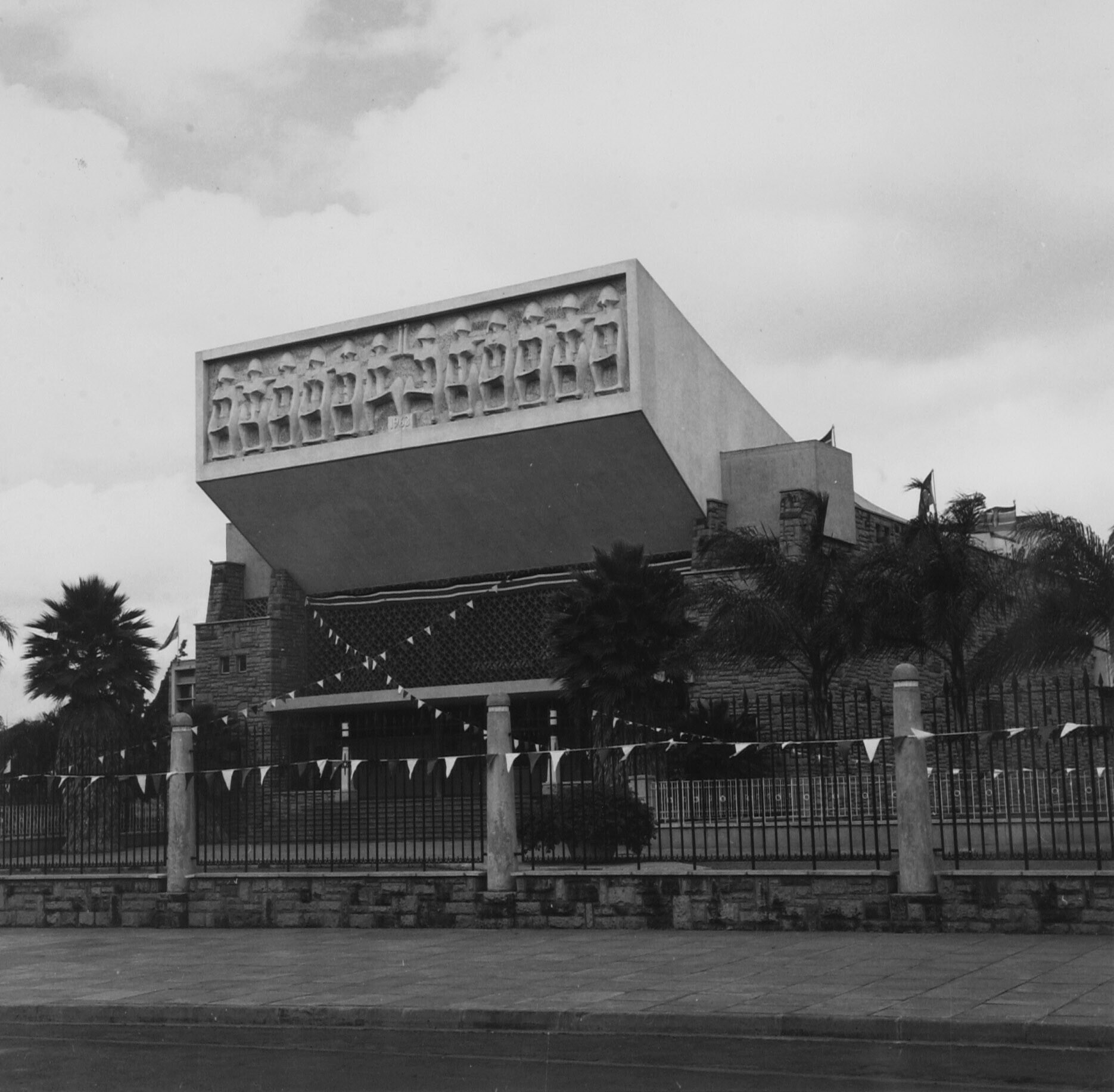 Een van de parlementsgebouwen in Nairobi met vlagget...