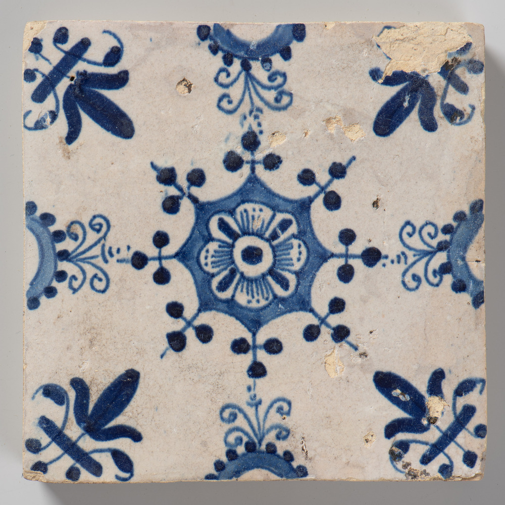 tegel van aardewerk met tinglazuur, zonder centraal ...