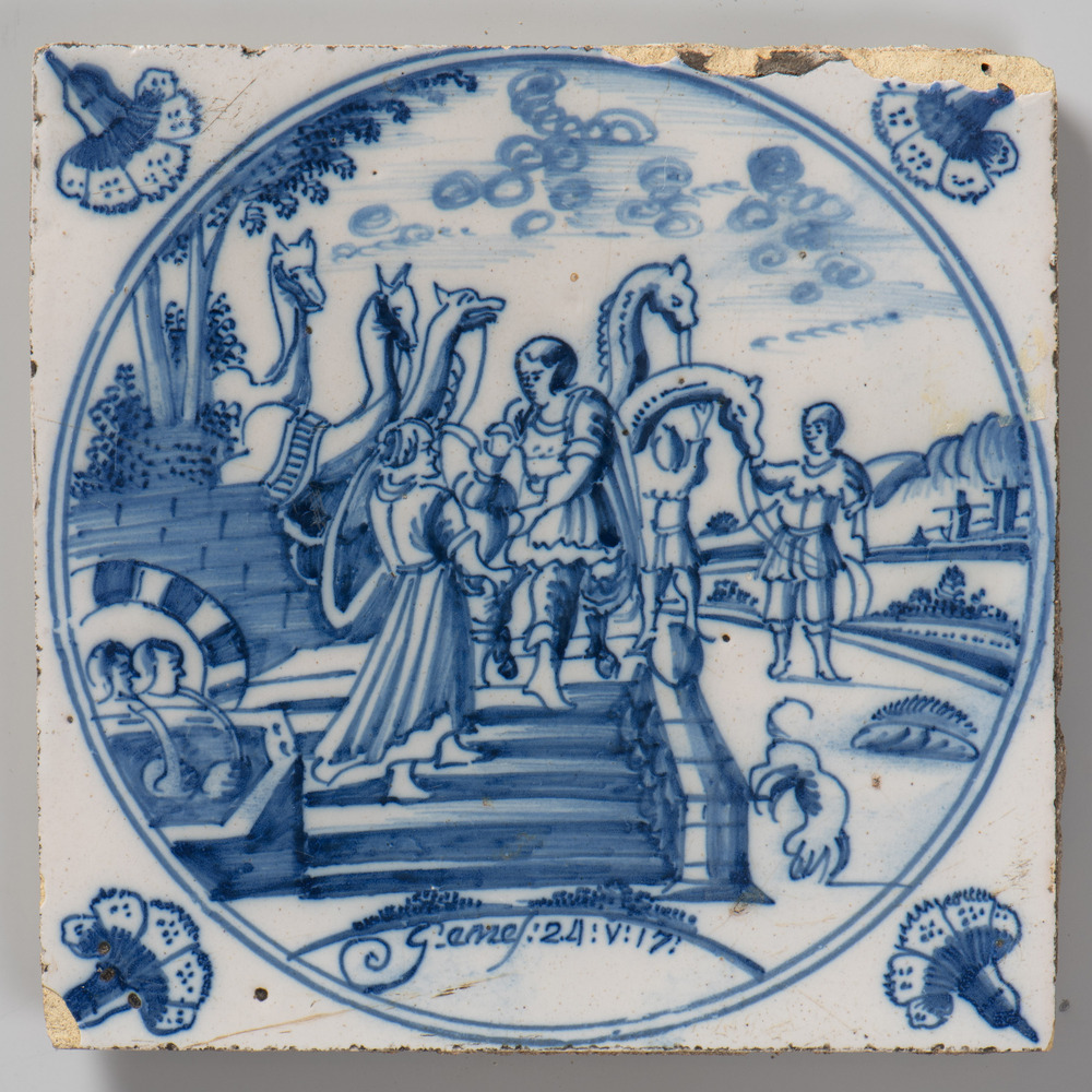 tegel van keramiek met tinglazuur, voorstellende: El...