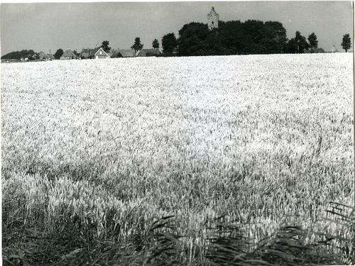 Foto in zwart-wit van een akker met tarwe door J.D. ...