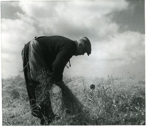 Foto in zwart-wit bouwen een mijt vlas op door J.D. ...