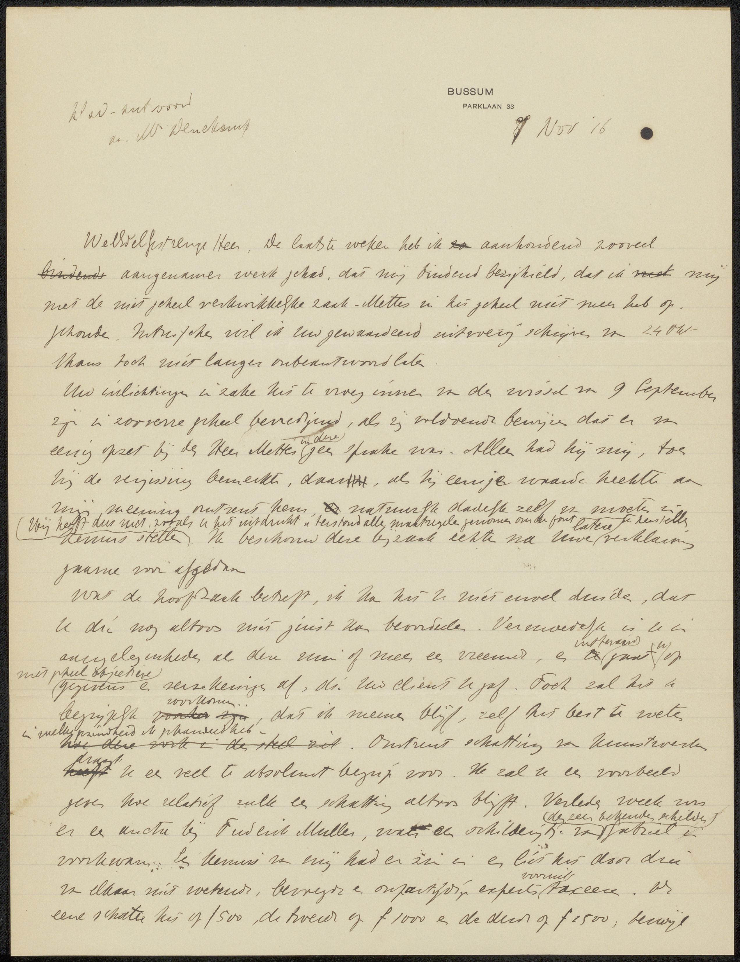 Conceptbrief aan Henri Pierre Leonard Wiessing