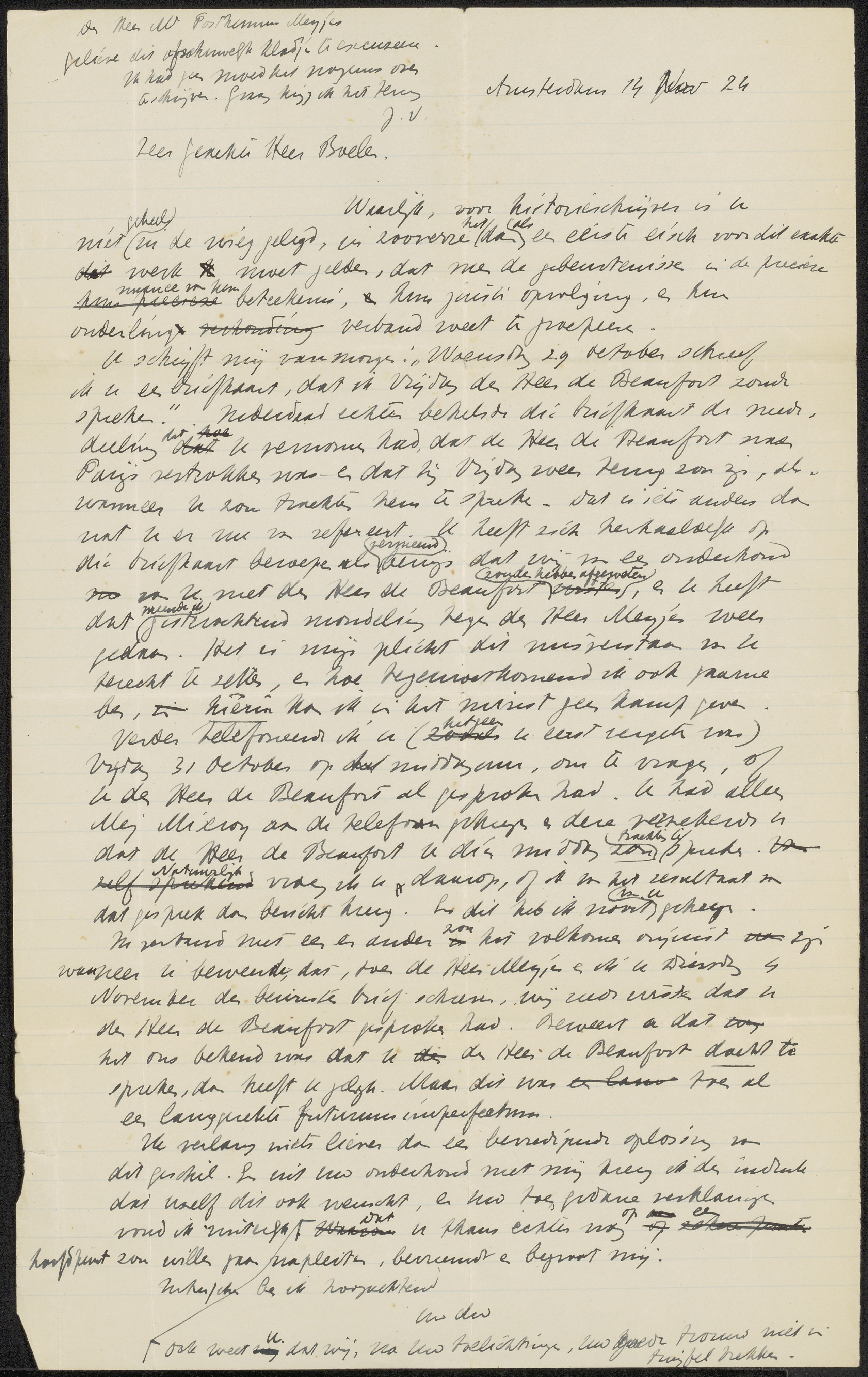 Conceptbrief aan Jan Kalff