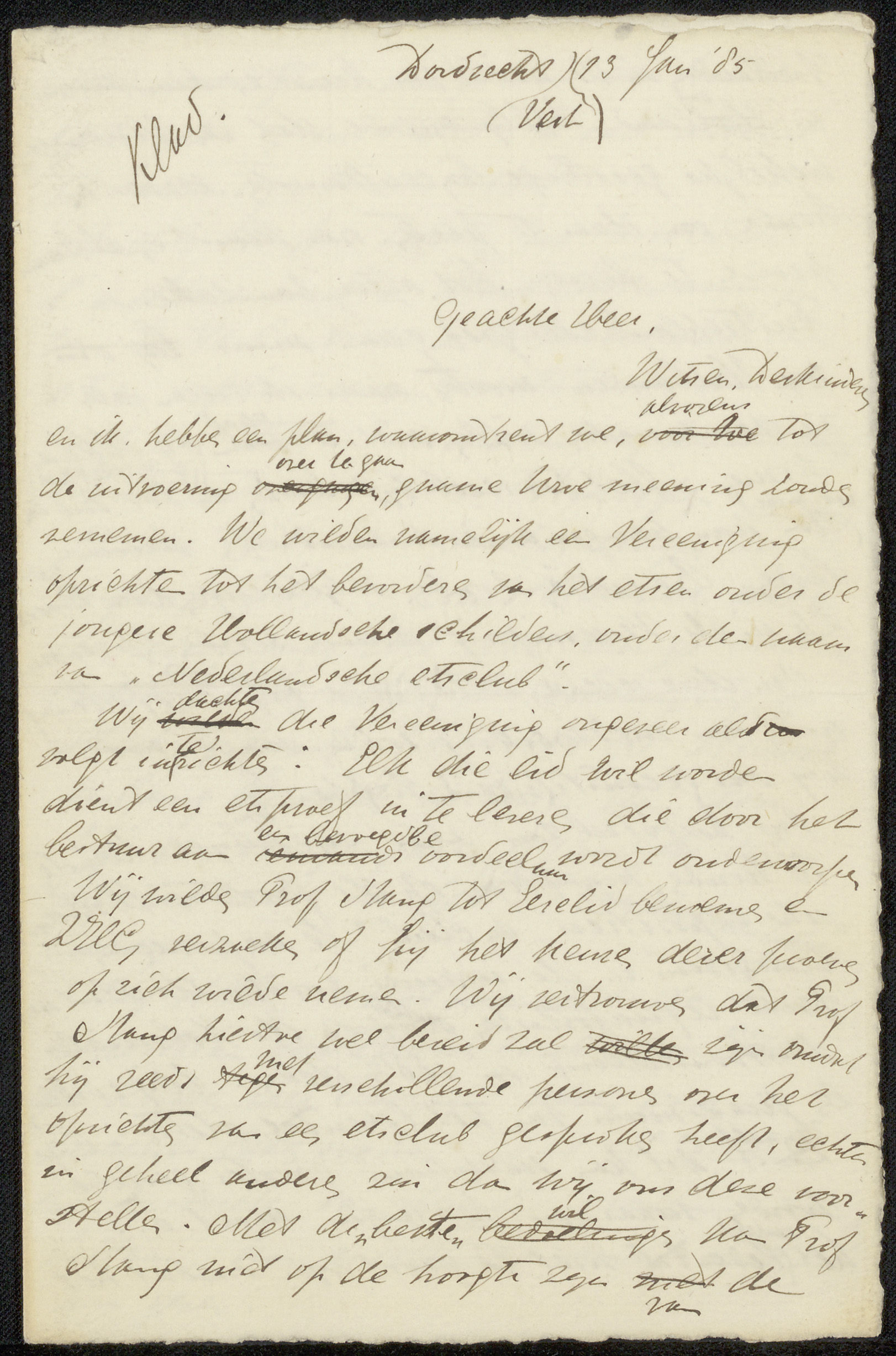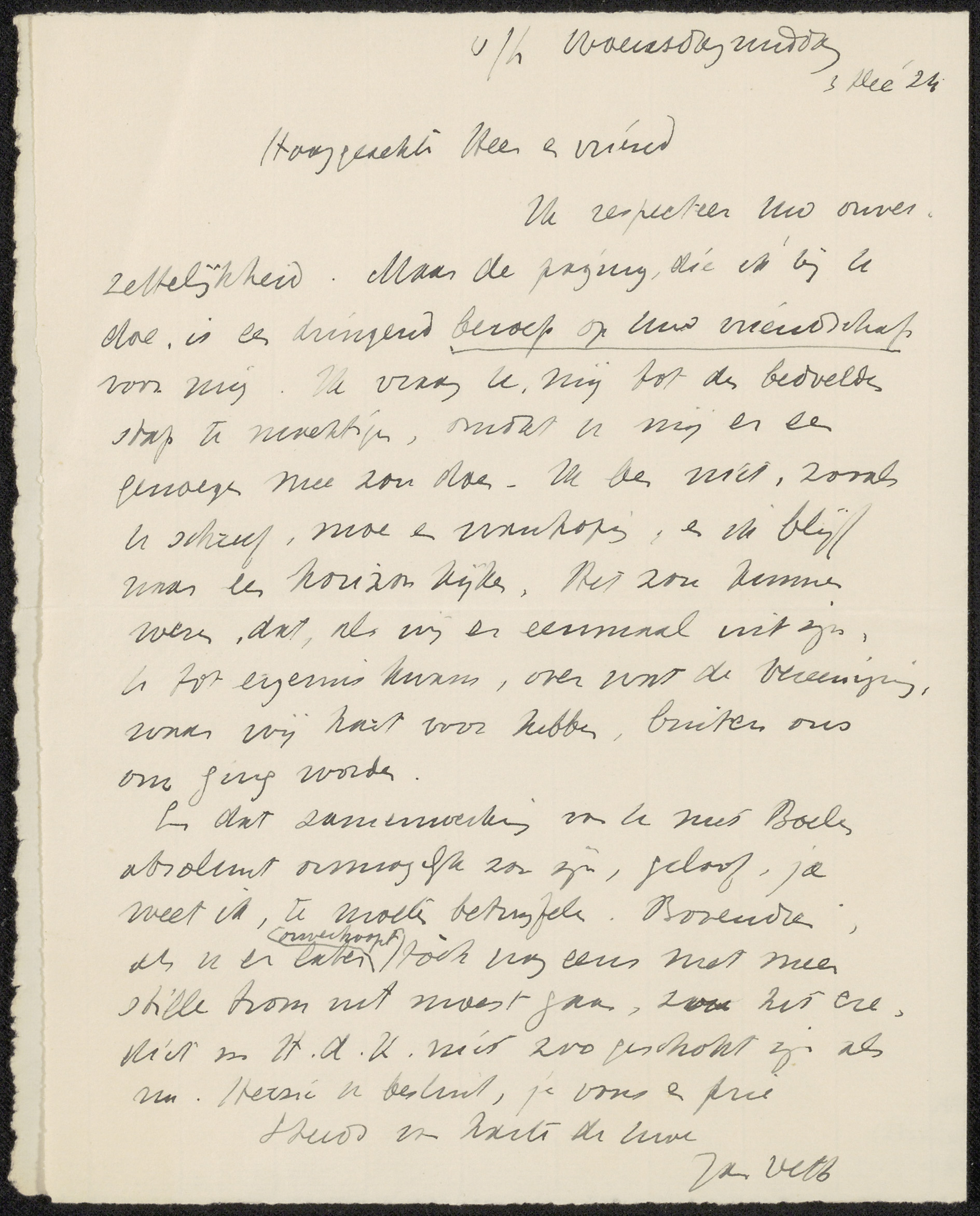Conceptbrief aan Albert Cornelis Vreede
