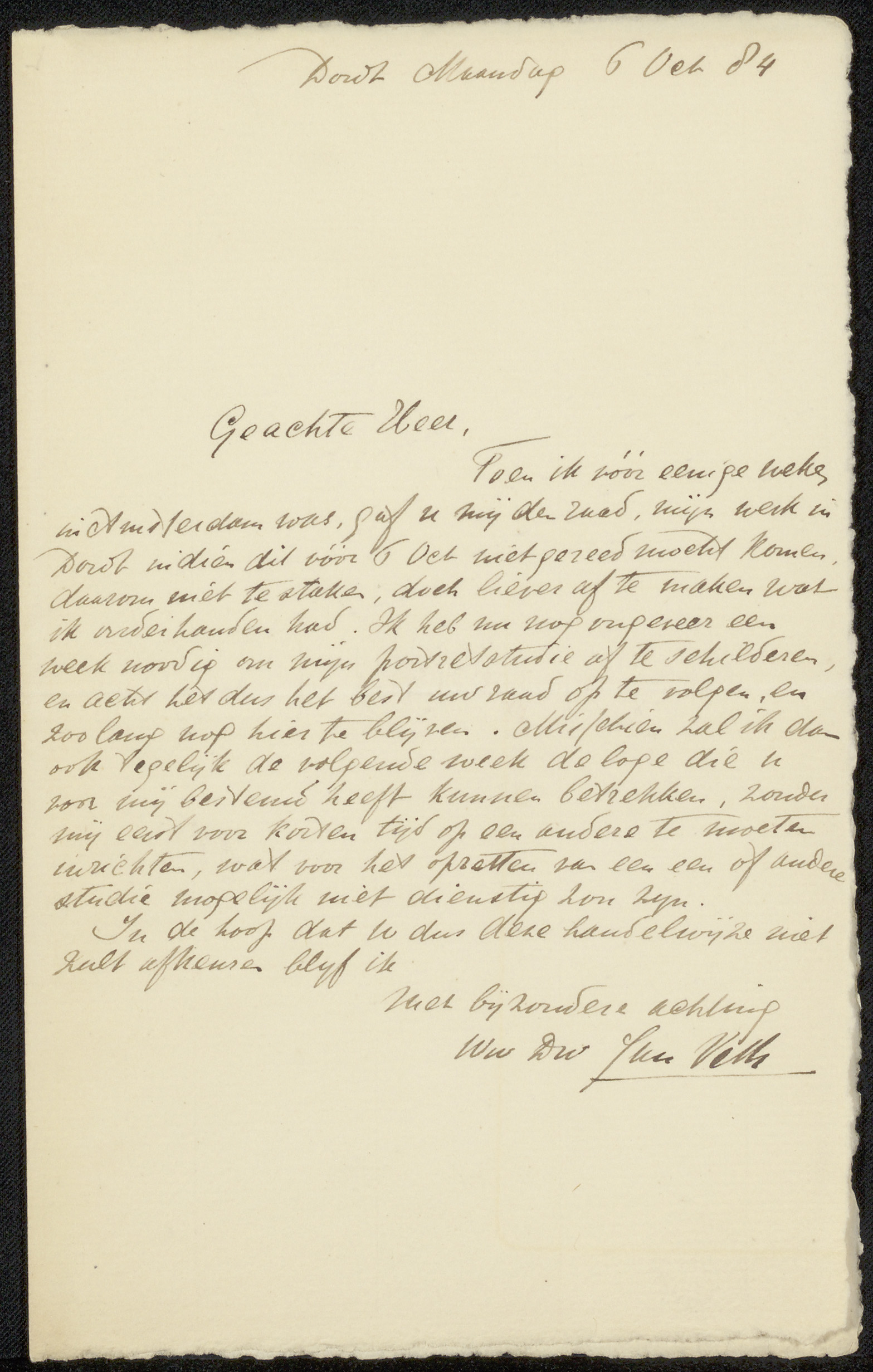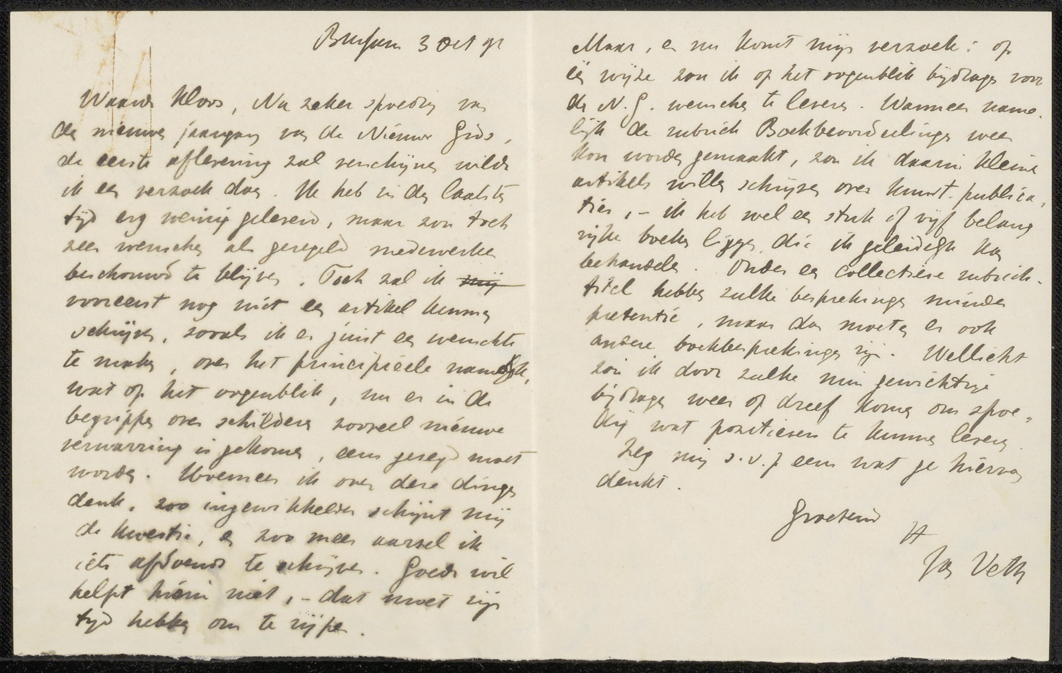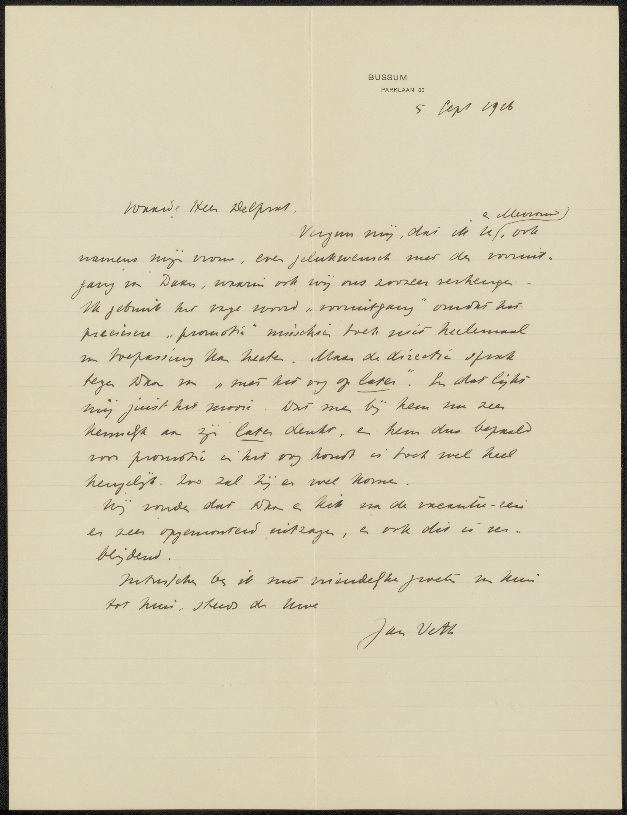 Brief aan Jan Veth