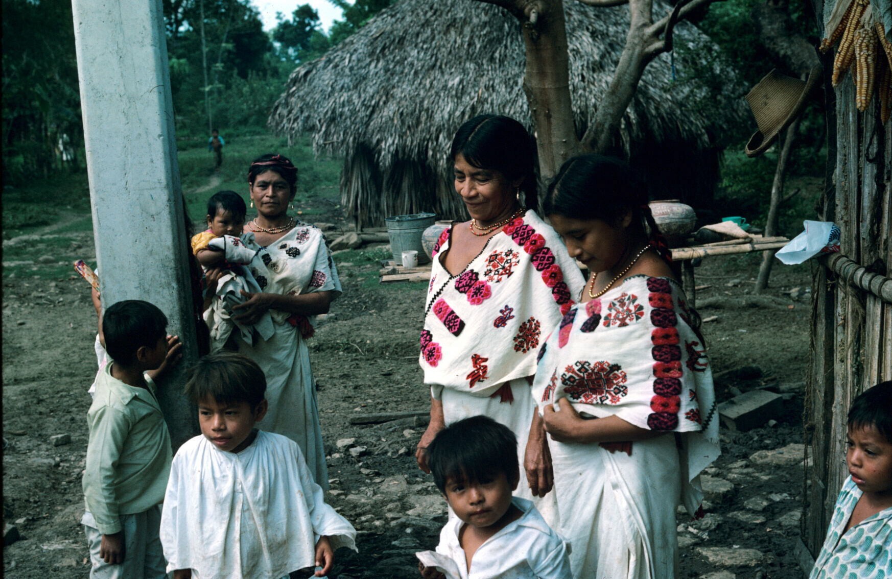Paula Leyenaar in dracht van Amatlán met lokale vrou...