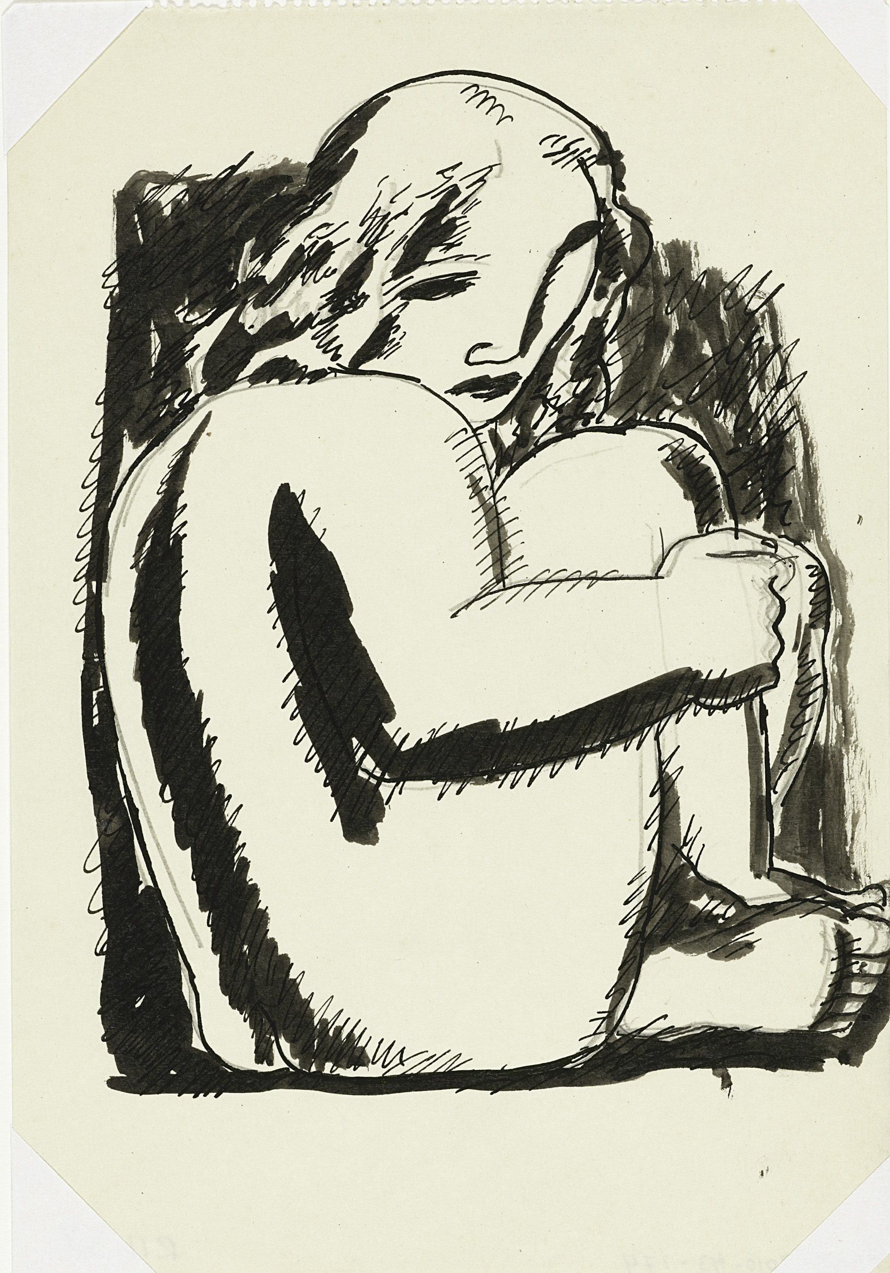 Naakte zittende vrouw met opgetrokken knieën (schets)