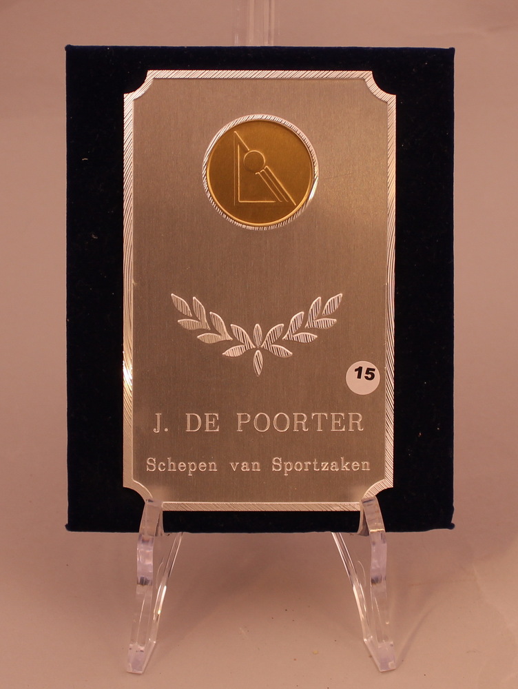Plaquette "J. de Poorter Schepen van Sportzaken"